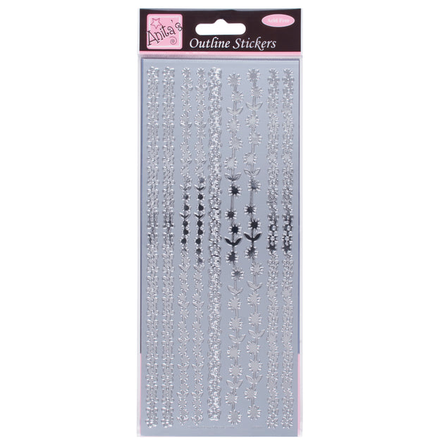 Anita's Outline Stickers, Floral Borders, Silver, For Scrapbooking, Card Making, Kids Play, Homework, Art, Craft, Embelish, Decorative, Paper, Card, Glass, Metal, Plastic, Foam