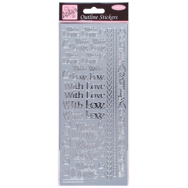 Anita's Outline Stickers, With Love, Silver, For Scrapbooking, Card Making, Kids Play, Homework, Art, Craft, Embelish, Decorative, Paper, Card, Glass, Metal, Plastic, Foam