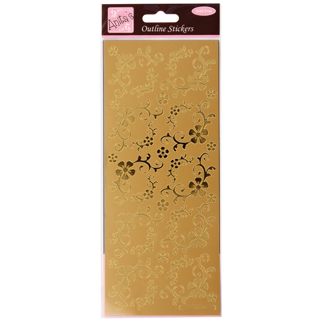Anita's Outline Stickers, Fanciful Floral Corners, Gold, For Scrapbooking, Card Making, Kids Play, Homework, Art, Craft, Embelish, Decorative, Paper, Card, Glass, Metal, Plastic, Foam