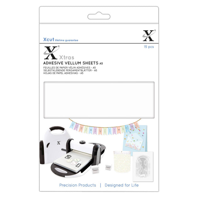 Xcut Xcut Xtras Adhesive Vellum Sheets, White, A5, Adhesive Sheets to Combine with Craft Dies and Die-cutting Machines, Ideal Card Making Supplies and Scrapbooking Supplies