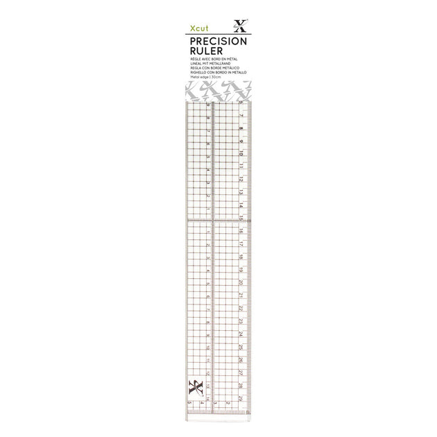 Xcut Precision Ruler, Metal Edge Inlay, Clear, 30cm, Metal Edge Inlay, Straight Edge, For Hobby Craft Kit, Measuring, Plans, Quilting