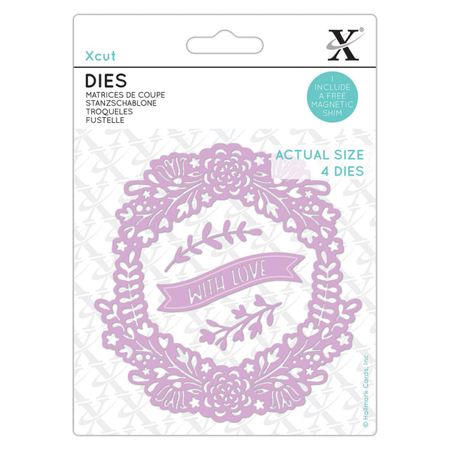 Xcut Dies, With Love Wreath, Silver, Set of 4, Ideal to use on a Birthday Card and Birthday Decoration, Perfect Card Making Supplies for your Craft Sets & Die Cutting Machine