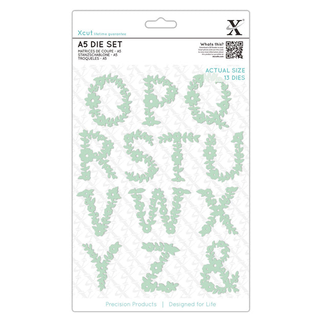 Xcut Dies, Floral Alphabet O - Z, Silver, A5, Ideal to use on a Birthday Card and Birthday Decoration, Perfect Card Making Supplies for your Craft Sets & Die Cutting Machine