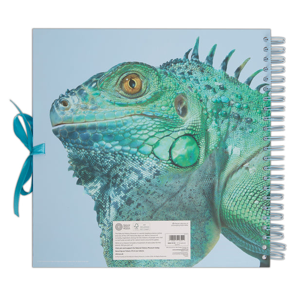 Natural History Museum Wiro Bound Hardback Scrapbook, 40 Pages, White Paper, Iguana, 12" x 12", Multicoloured, With Coordinating Ribbon Closure And Wire Colours