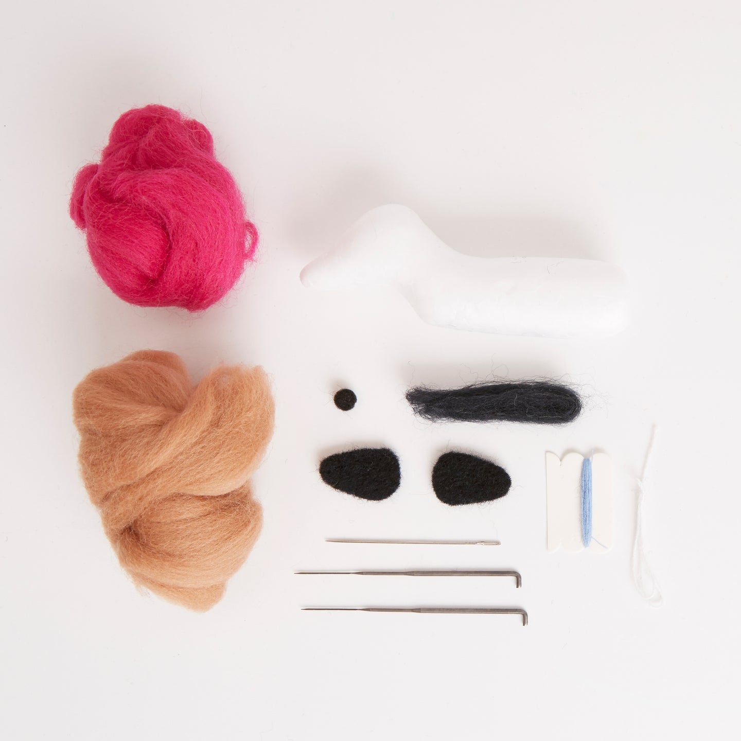 CONTENTS The kit features polystyrene bases, needle felting wool, felt needle, pre-cut felt pieces, accessories and a handy set of instructions. A perfect DIY craft kit for beginners, all supplies included
