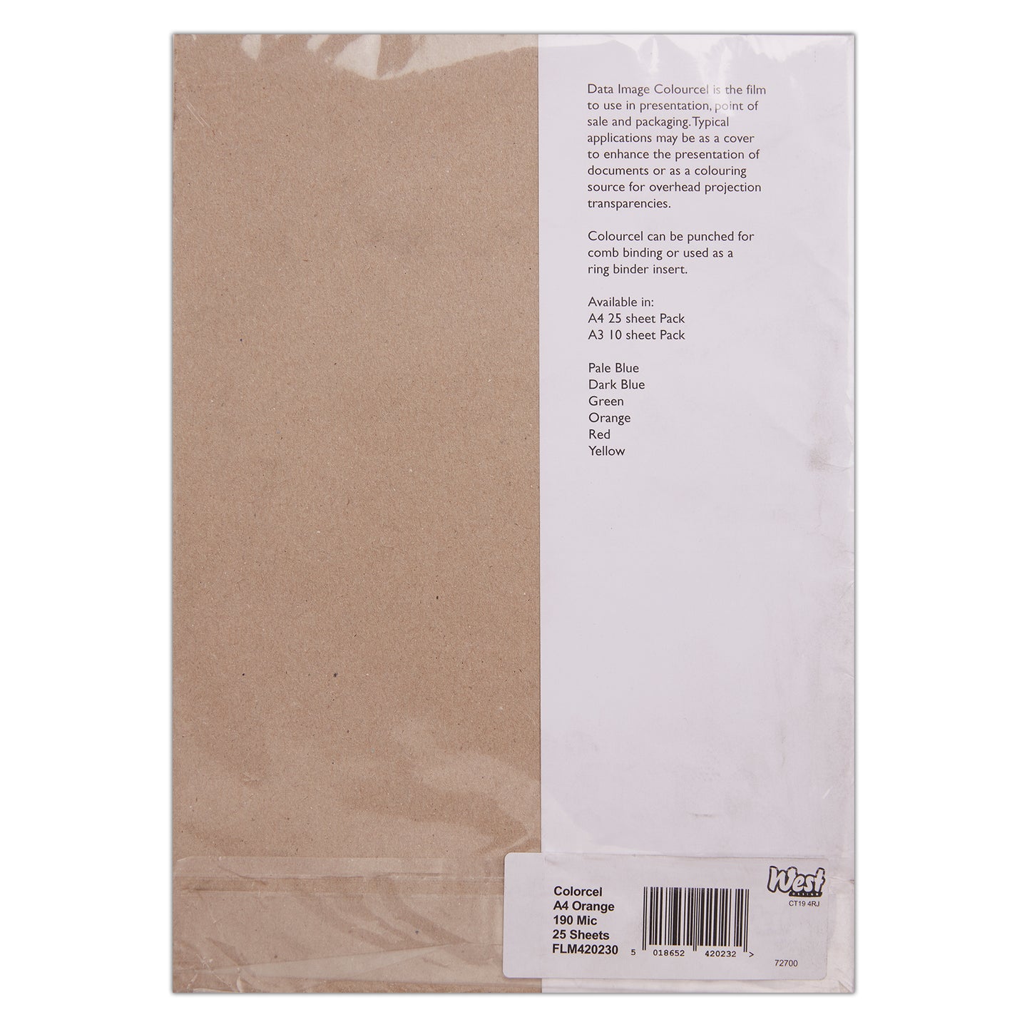 Westfilm Tinted Clear Coloured Film, Orange, A4, 190 Microns, 25 Sheets, For A Number Of Art & Craft Mediums Such As Screen Printing And Visual Presentations