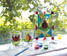 CONTENTS Kit includes glass votive x2, glass suncatcher (15x10cm clip frame), self-adhesive lead strip, glass paints x5 colours, paint brush, suction cap, a set of instructions/patterns in English, French and Italian. Tealight candle not included