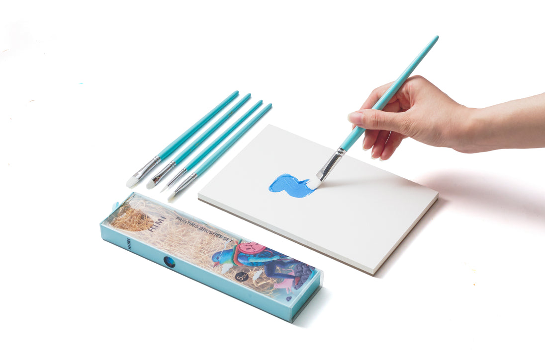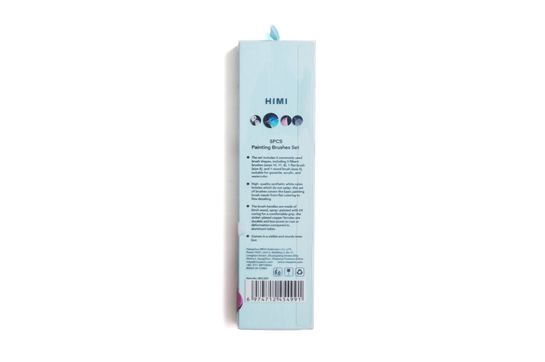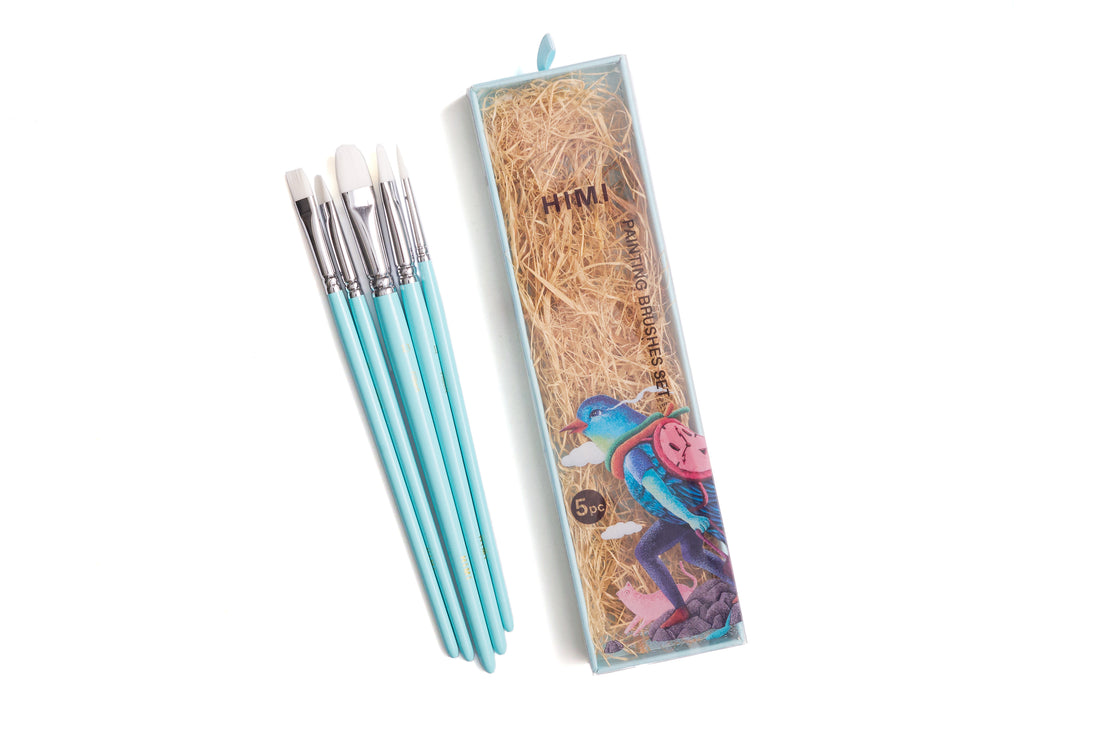 Five HIMI brushes you’ll use the most in your daily creative process with gouache or acrylic paint. The set includes a mix of 1 round, 1 flat, and 3 filbert brushes in useful everyday sizes, great for details, filling large areas, or blending soft transitions.