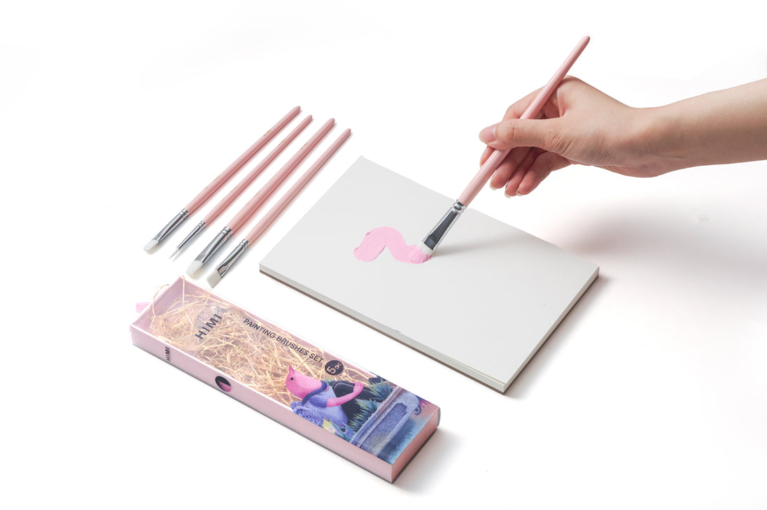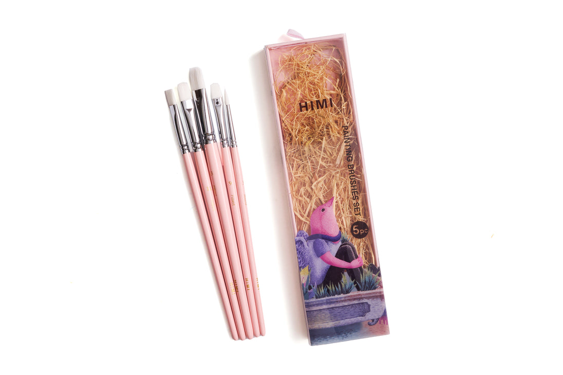 Five HIMI brushes you’ll use the most in your daily creative process with gouache or acrylic paint. The set includes a mix of 1 round, 1 flat, and 3 filbert brushes in useful everyday sizes, great for details, filling large areas, or blending soft transitions.