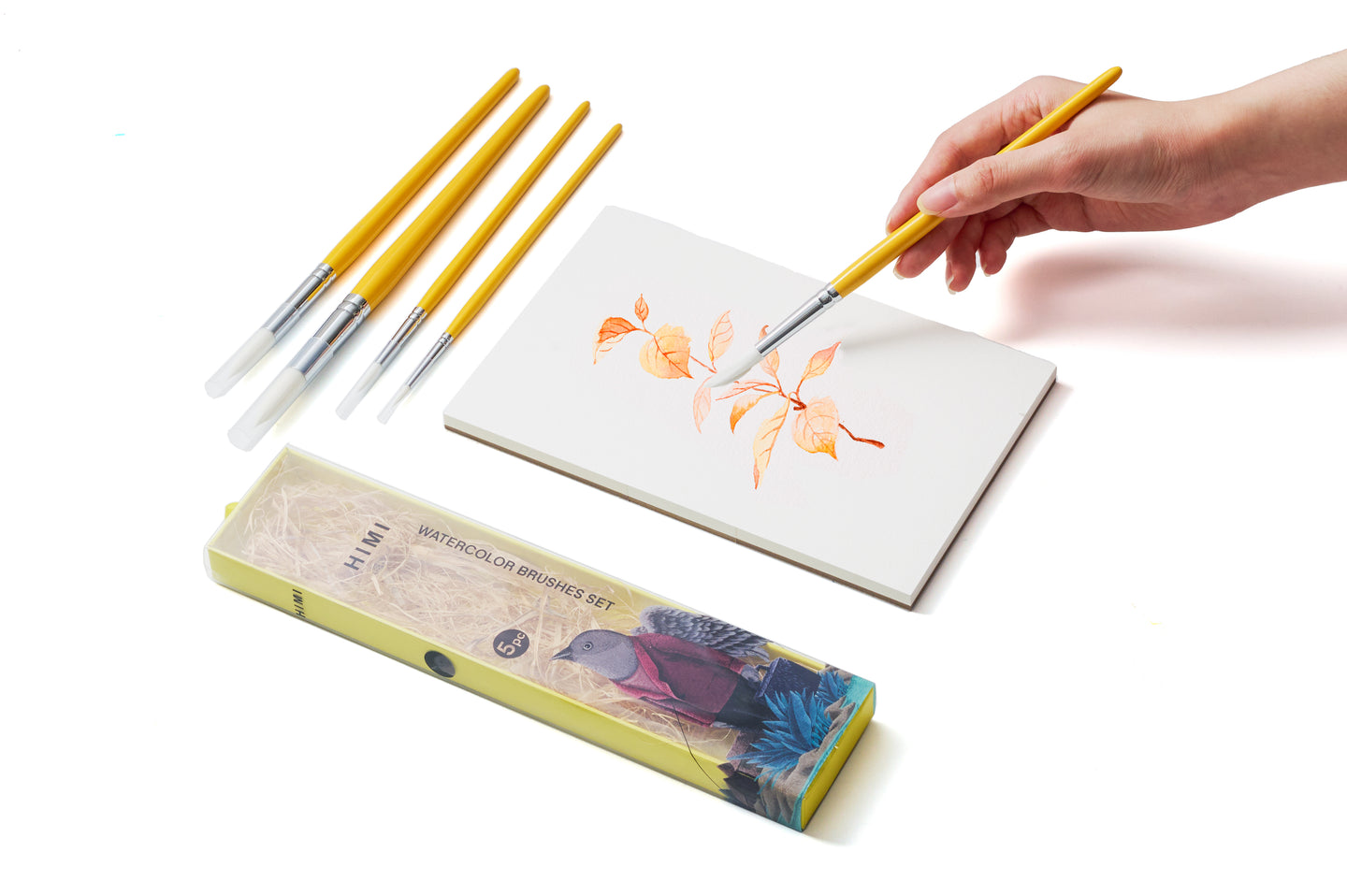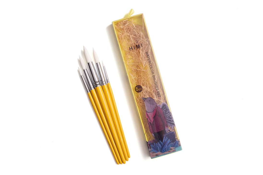 HIMI Brush Set of 5, Includes 5 Round Brushes, Yellow Edition, Beginner Paint Art Brushes Set, Acrylic, Gouache Painting, Soft Blends, Bold Strokes, Fine Details