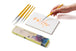 A set for watercolour lovers. These five round brushes come in a balanced range of sizes — from fine points for details and lines to larger tips for smooth washes and soft backgrounds. Round brushes are the heart of watercolour painting, but this set also works beautifully with gouache and acrylic when you want more flow and control. Made for table-size painting and sketching, the short handles feel great in hand and give control over details. The soft nylon bristles load paint beautifully and work smoothly, clean edges, easy flow, no stray hairs. Each brush has a sturdy birch handle painted in yellow and a nickel ferrule, built to last through countless creative sessions. The set comes in a lovely cardboard box, which can be used for storage and transportation. Care is simple: wash with green soap after use, shape the bristles gently with your fingers, let them dry, and store them in a brush or paint case. They’ll stay fresh and ready for your next creative session.