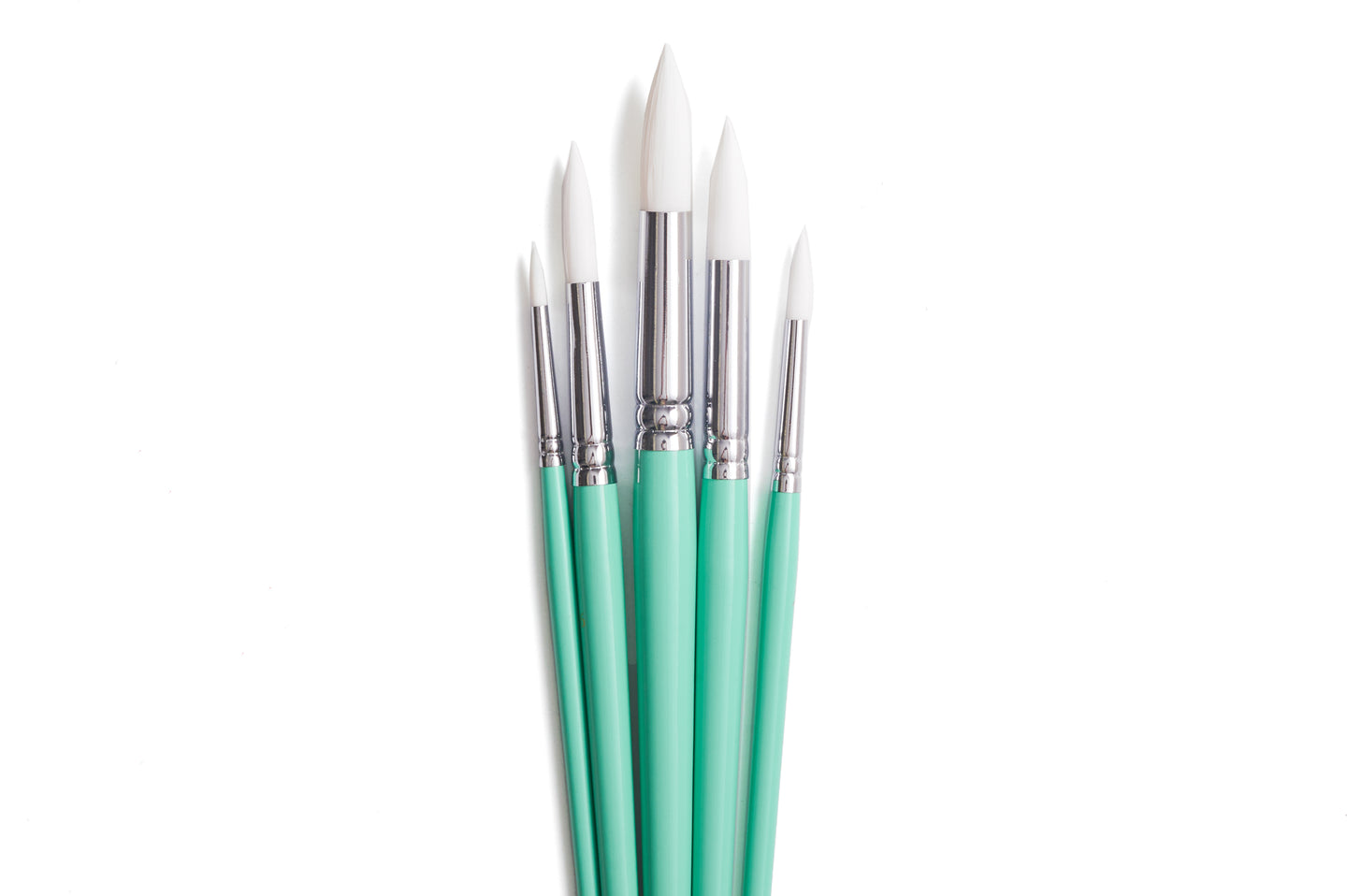 A set for watercolour lovers. These five round brushes come in a balanced range of sizes — from fine points for details and lines to larger tips for smooth washes and soft backgrounds. Round brushes are the heart of watercolour painting, but this set also works beautifully with gouache and acrylic when you want more flow and control. Made for table-size painting and sketching, the short handles feel great in hand and give control over details. The soft nylon bristles load paint beautifully and work smoothly, clean edges, easy flow, no stray hairs. Each brush has a sturdy birch handle painted in green and a nickel ferrule, built to last through countless creative sessions. The set comes in a lovely cardboard box, which can be used for storage and transportation. Care is simple: wash with green soap after use, shape the bristles gently with your fingers, let them dry, and store them in a brush or paint case. They’ll stay fresh and ready for your next creative session.
