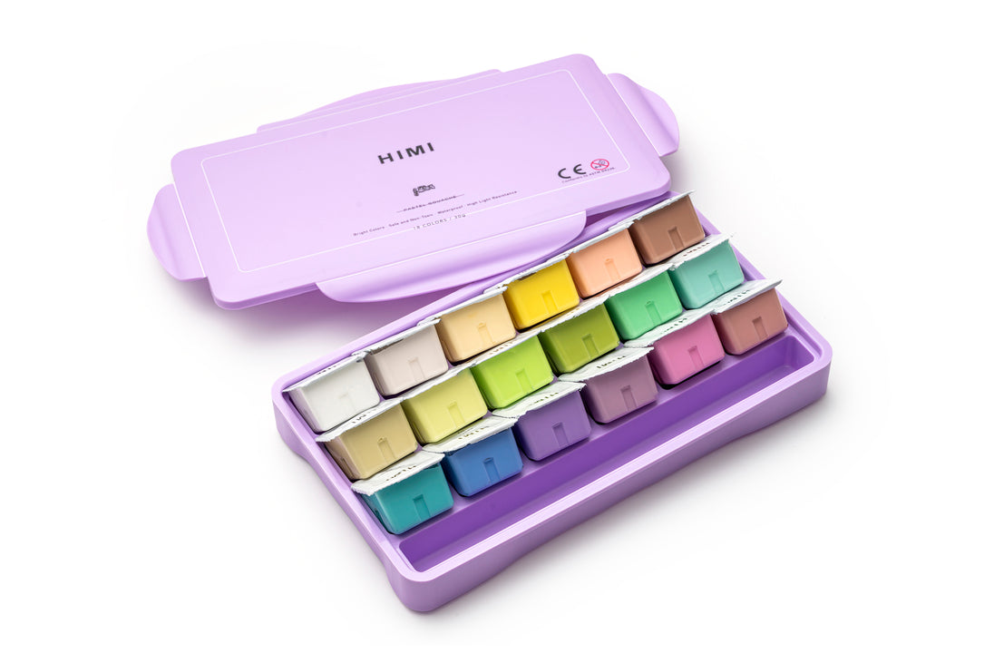 18 soft pastel colours in a purple case, smooth gouache paints for gentle tones and dreamy blends. Paint with delicacy and tenderness. The HIMI Jelly Cup Gouache Set – Pastel Edition includes 18 soft, dreamy shades created for nuanced transitions, subtle highlights, and light-filled artwork. Each paint is made with peach gum and rich pigments, giving you a smooth, silky feel on the brush and a matte finish that stays vibrant without whitening or dullness. Gouache reactivates with water, so nothing goes to waste. Just add a drop to bring colours back to life. Easy to clean, safe, and non-toxic, this set is as practical as it is inspiring. Tip: Pair this set with the HIMI Spray to keep paints moist and fresh for longer sessions. The compact purple case keeps everything neatly organised and easy to carry, whether you’re painting at home, outdoors, or in class. Perfect for artists and hobbyists who love soft tones, calm palettes, and effortless blending.