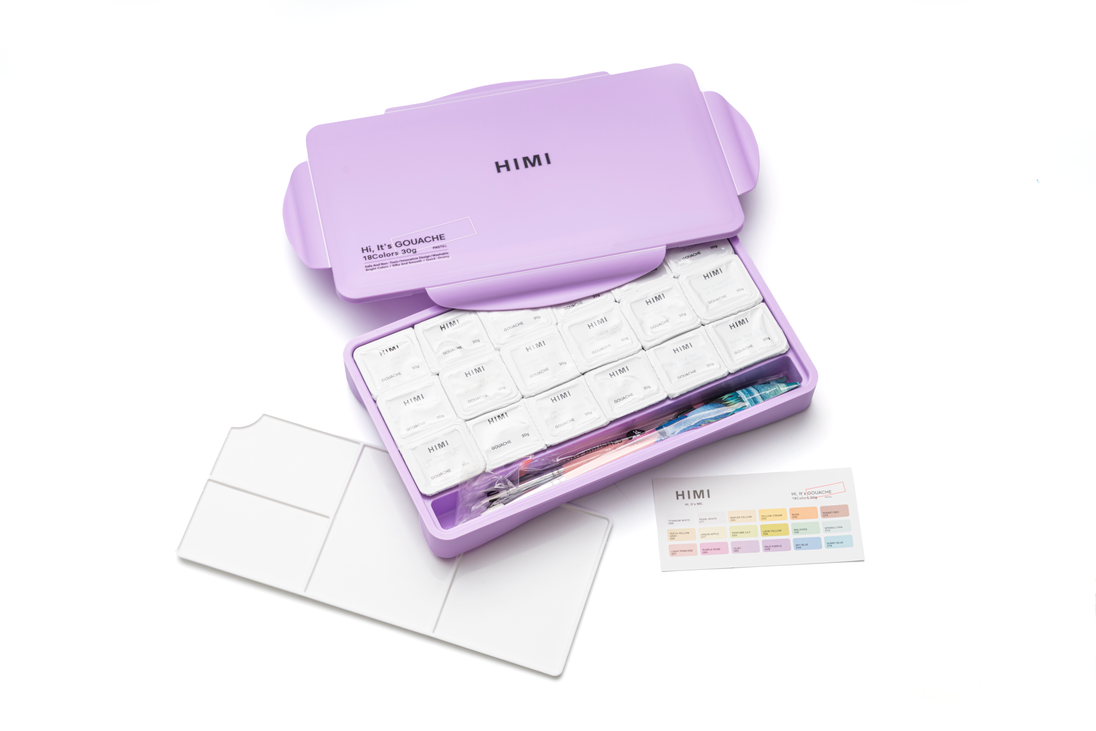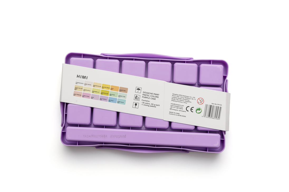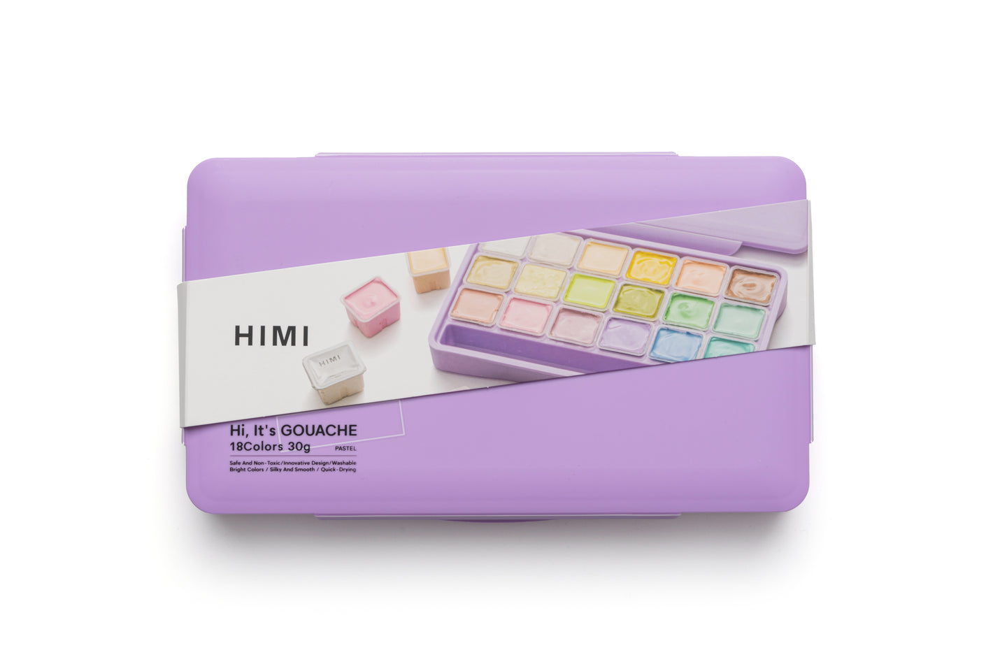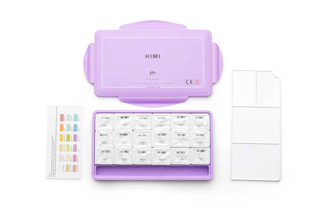HIMI Jelly Cup Gouache Set 18 Paint Colours, Purple Case, Add Water To Reactivate, Smooth, Rich Colours, Gift, Artist Art Supplies, Large Scale Art Work To Fine Details, Ready To Use Gouache Colors