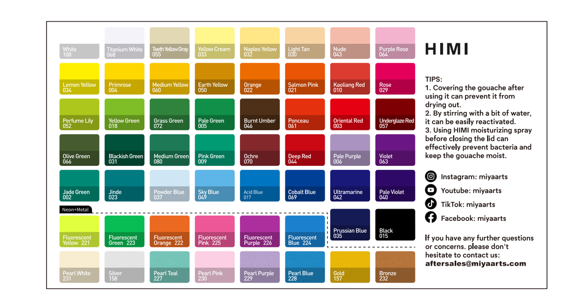 56 colours in a sleek white case, opaque gouache paints for the complete spectrum, ready for beginners and artists who want it all. Paint without limits. The HIMI Jelly Cup Gouache Set offers versatile colour experience with 56 shades, including classic tones, bright fluorescents, and shiny metallics. Each paint is made with peach gum and rich pigments, giving you a smooth, silky feel on the brush and a matte finish that stays vibrant without whitening or dullness. Gouache reactivates with water, so nothing goes to waste. Just add a drop to bring colours back to life. Easy to clean, safe, and non-toxic, this set is as practical as it is inspiring. Tip: Pair this set with the HIMI Spray to keep paints moist and fresh for longer sessions. The case keeps your collection neatly organised and portable, so you can carry the entire colour world wherever inspiration strikes. Ideal for beginners exploring freely and for experienced artists who want the diverse palette at their fingertips.