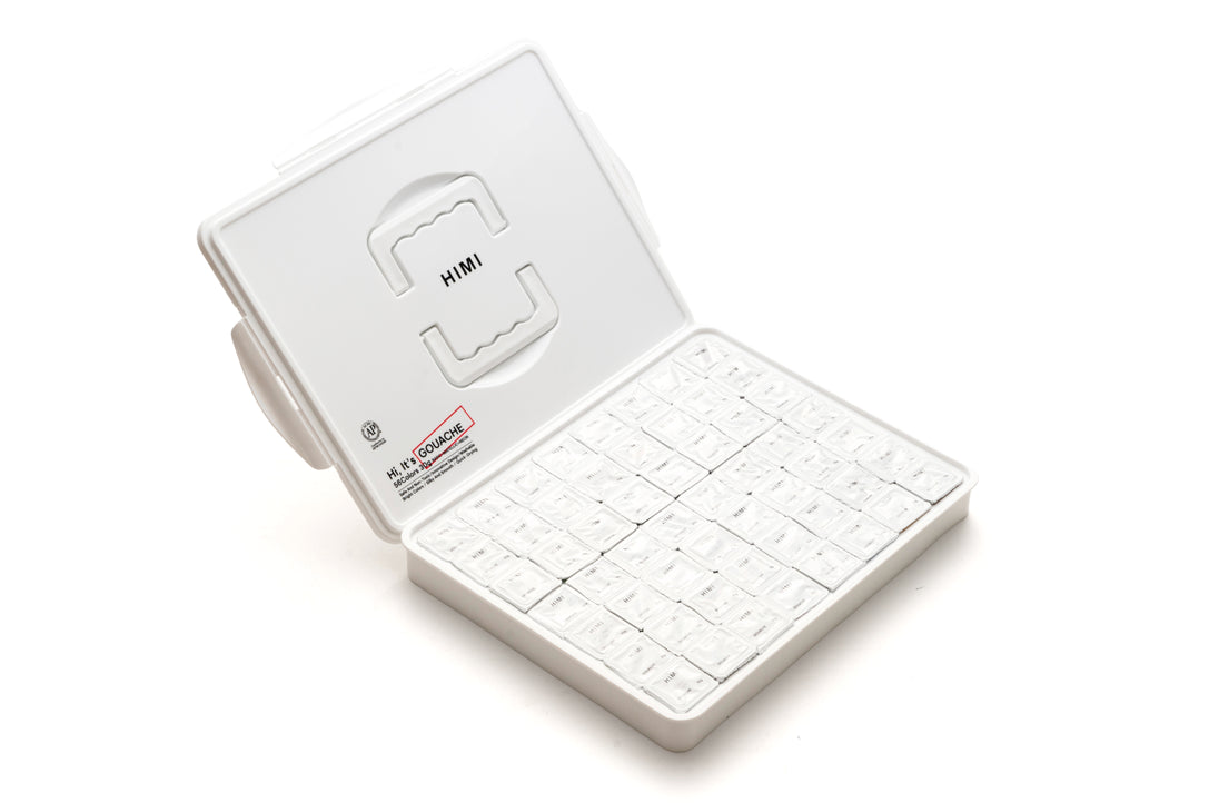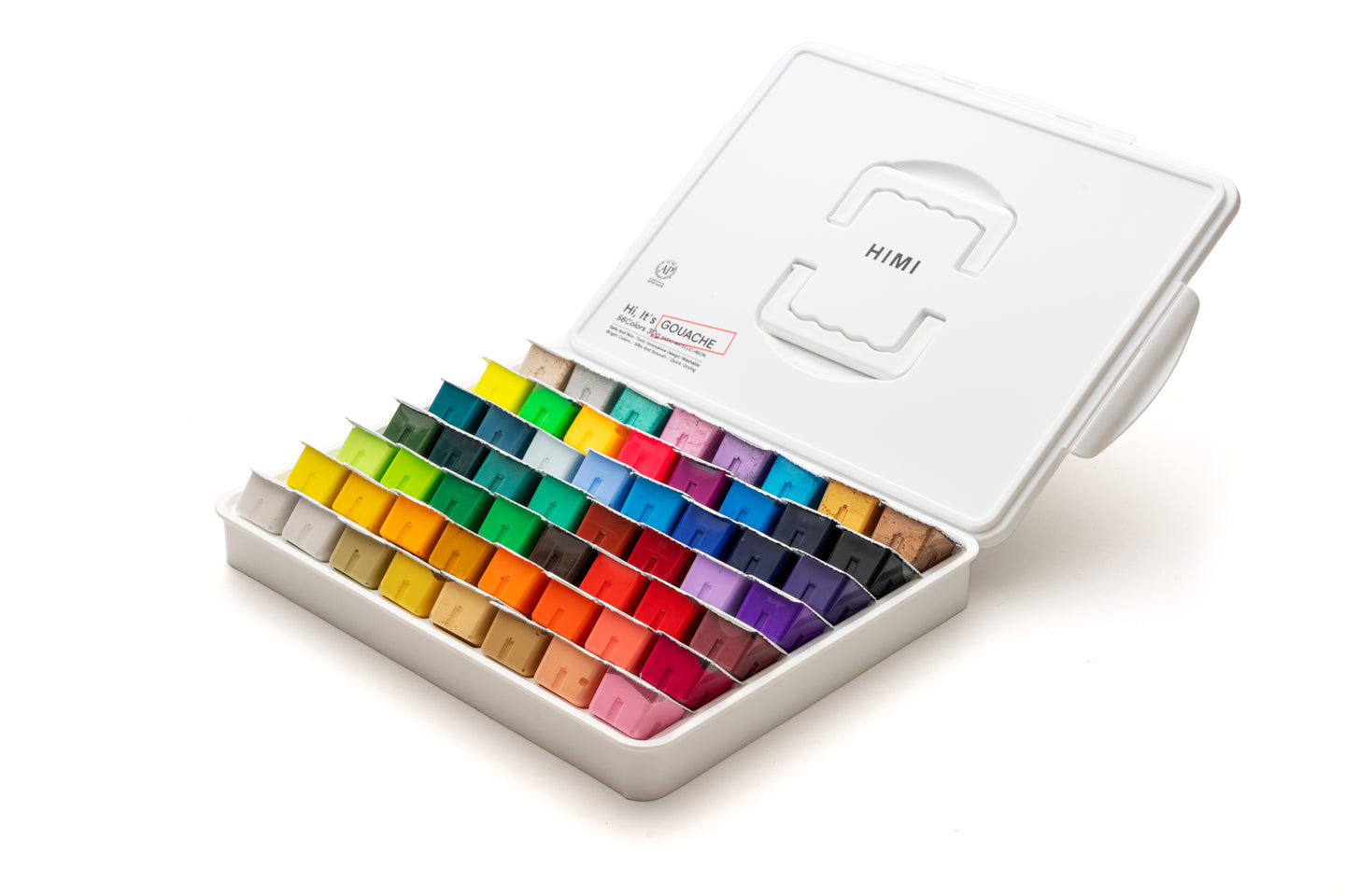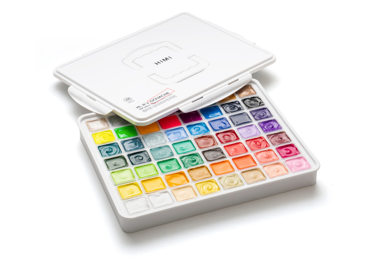 HIMI Jelly Cup Gouache Set 56 Paint Colours, White Case, Add Water To Reactivate, Smooth, Rich Colours, Gift, Artist Art Supplies, Large Scale Art Work To Fine Details, Ready To Use Gouache Colors