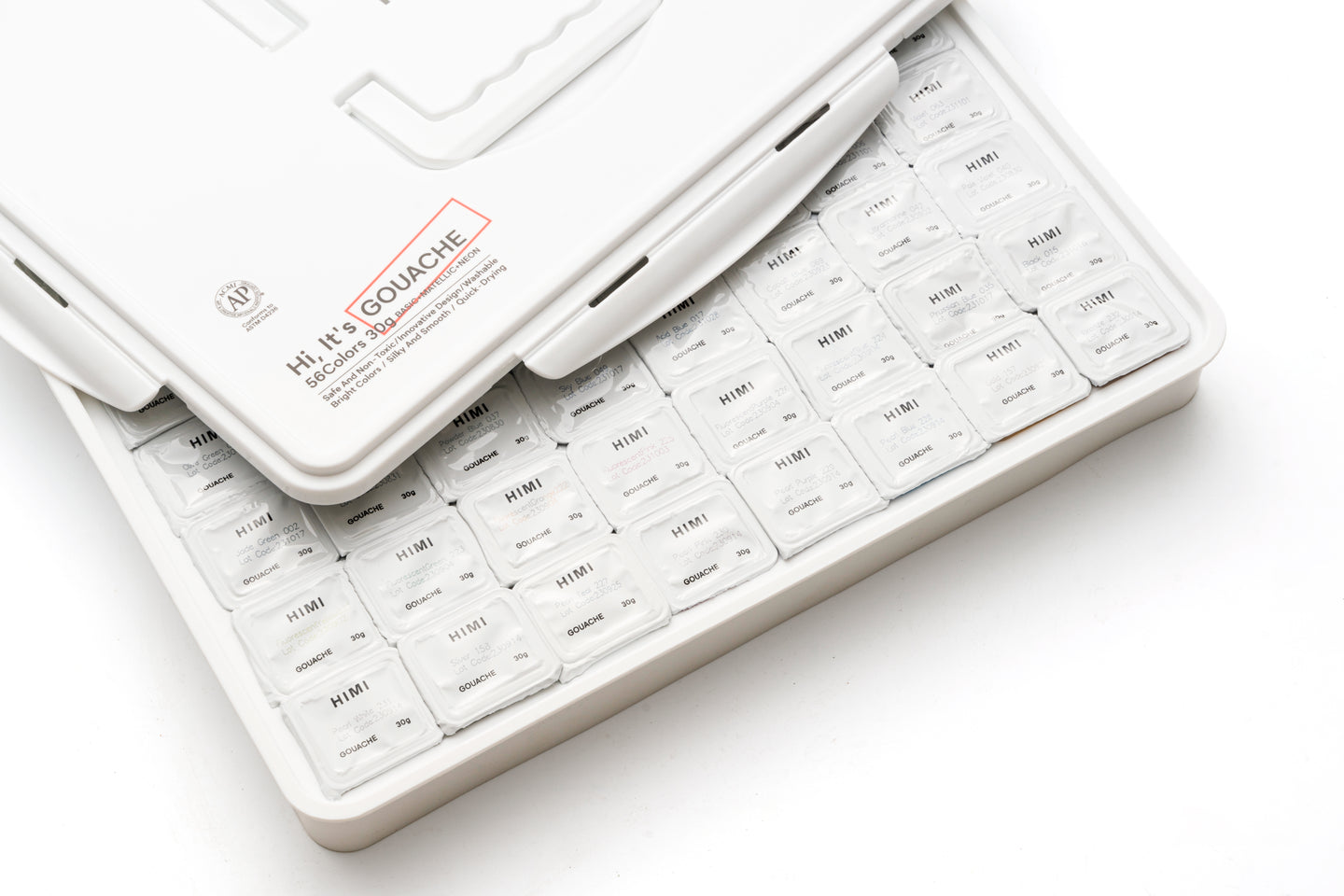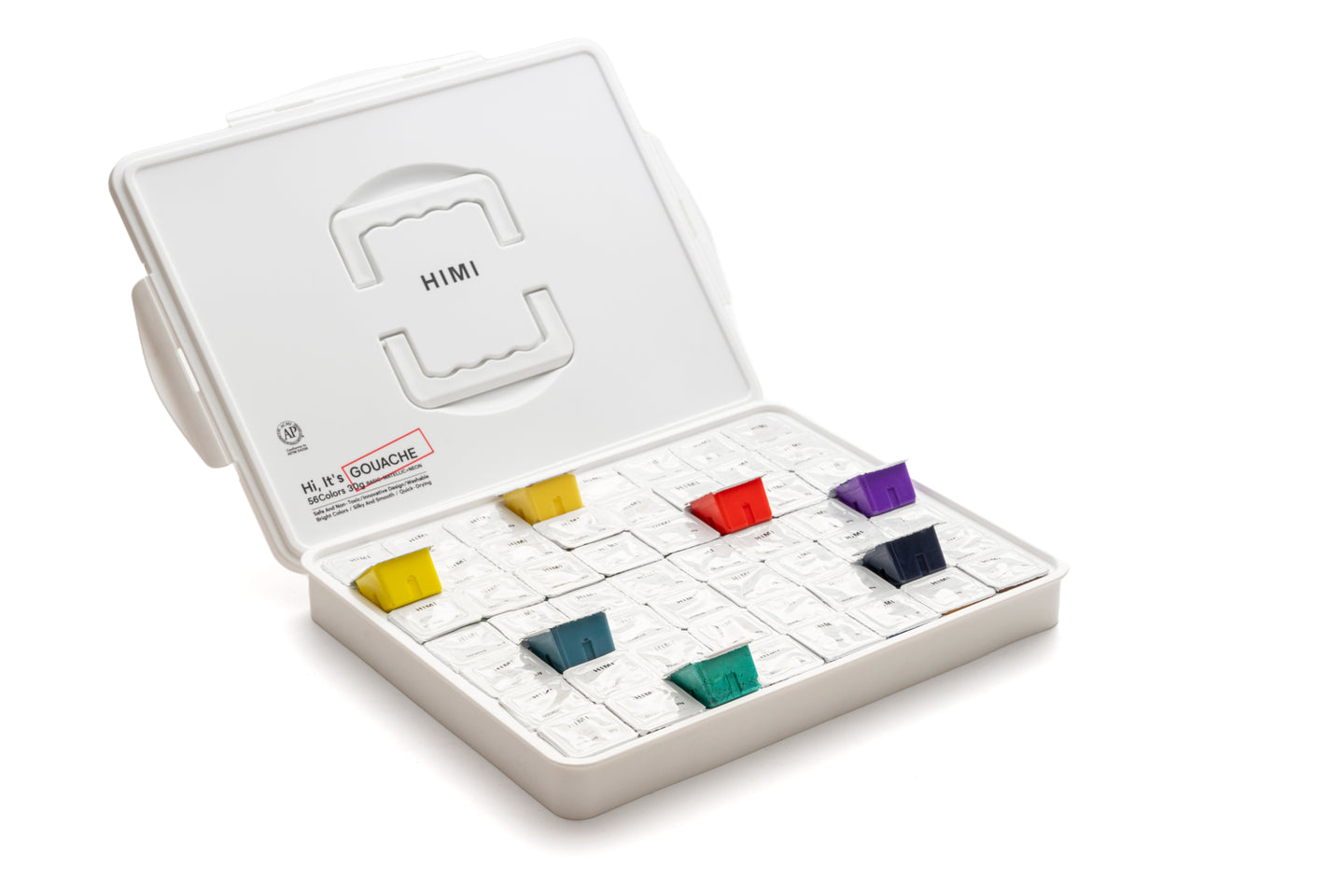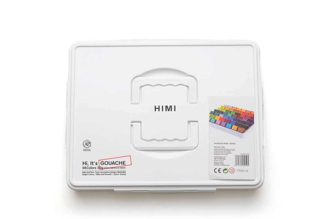 HIMI Jelly Cup Gouache Set 56 Paint Colours, White Case, Add Water To Reactivate, Smooth, Rich Colours, Gift, Artist Art Supplies, Large Scale Art Work To Fine Details, Ready To Use Gouache Colors