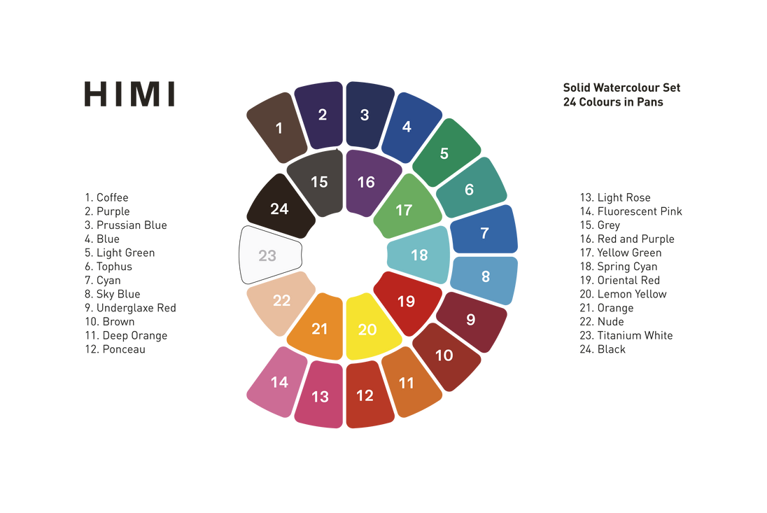 Enjoy painting with the HIMI Solid Watercolour Snail Set. With 24 vivid shades, this set is designed especially for kids, it is easy to use, +L56olours bright. Made with fine pigments and gum arabic, these paints blend smoothly and are safe and easy to clean.