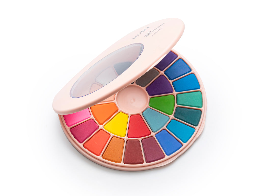 The unique snail-shell design makes painting easier and more fun. The ring-shaped arrangement helps choosing colours effortlessly, and the lid can be used as a mixing area.
