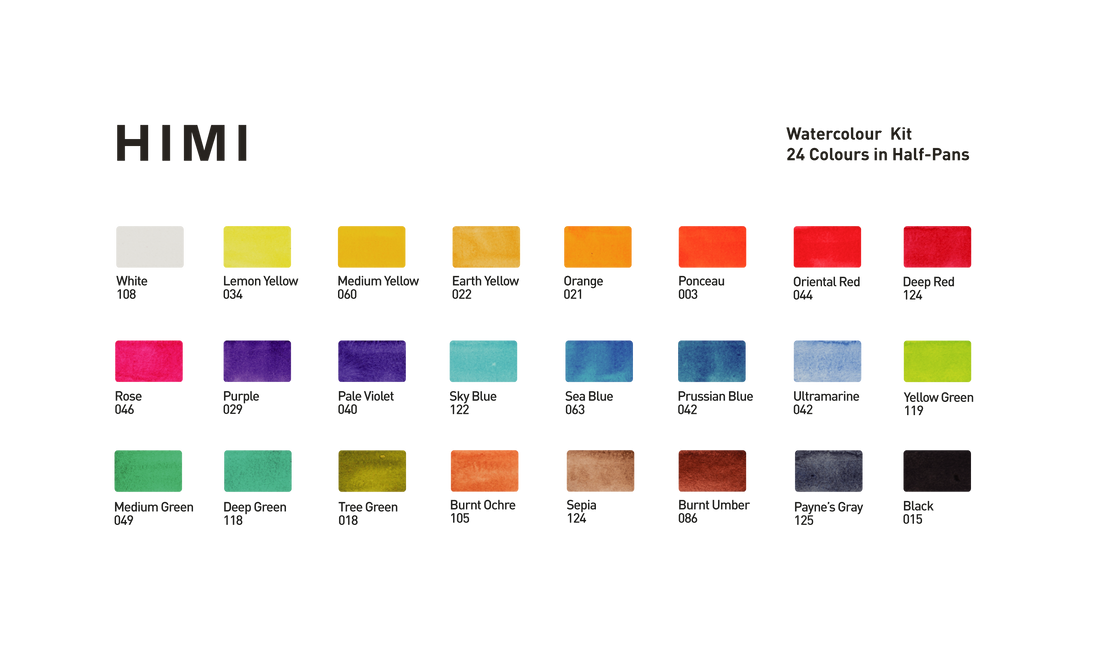 Loved by illustrators and sketchers, the HIMI Watercolour Kit is made for those who like to capture the world as they see it, right here and now. With 24 rich colours made from fine pigments and gum arabic, it offers smooth flow, clean mixing, and bright tones that come to life with just a touch of water.