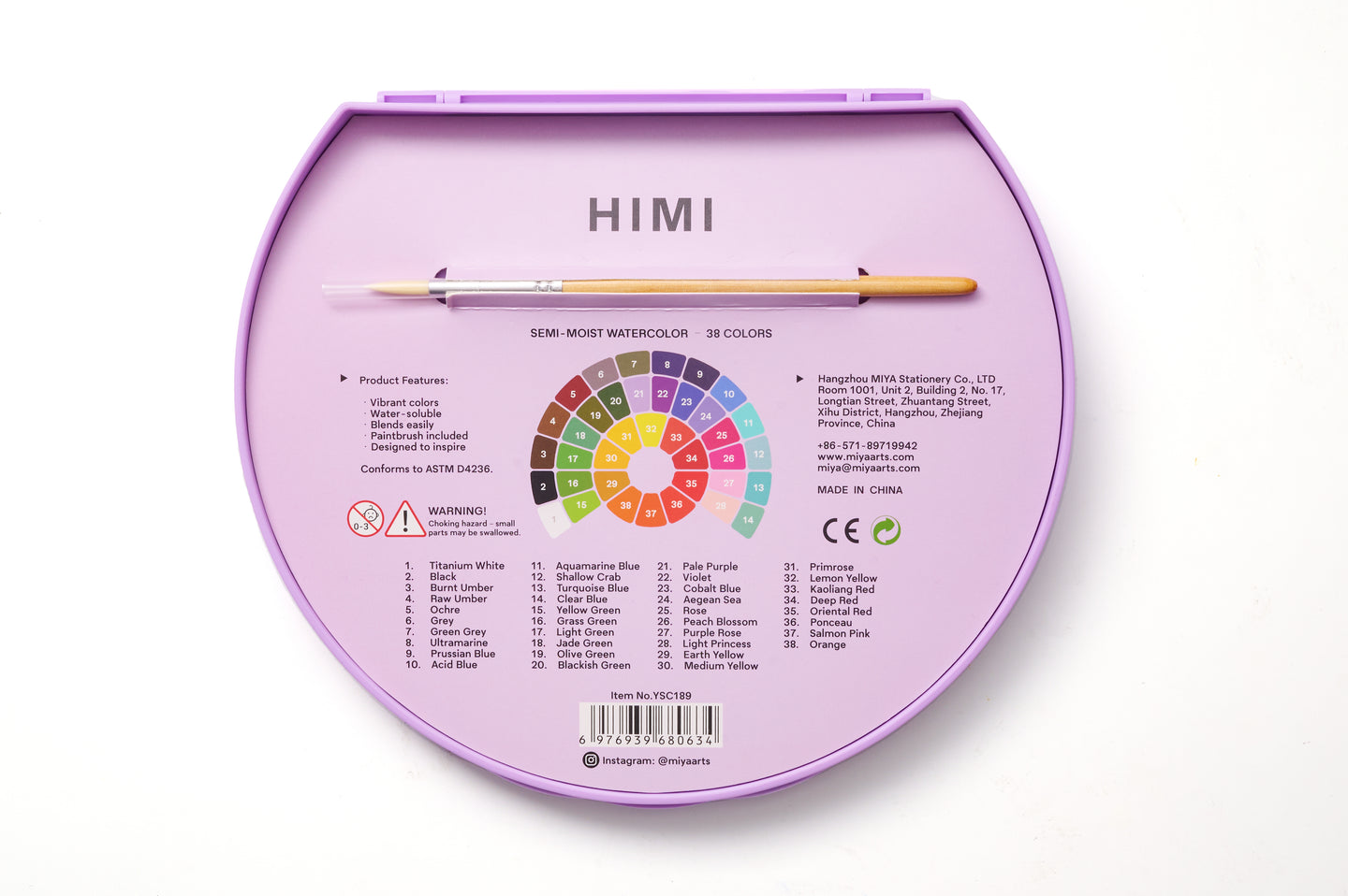 HIMI Semi-Moist Watercolour Set, 38 Colours In Pans, Brush, Purple Case Edition, Softer Than Dry, Wake Up With Splash Of Water, Easy To Mix, Paint Brush, Art Set Supplies, Gift, Beginner
