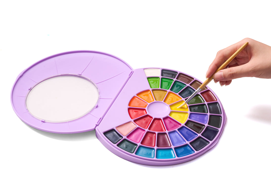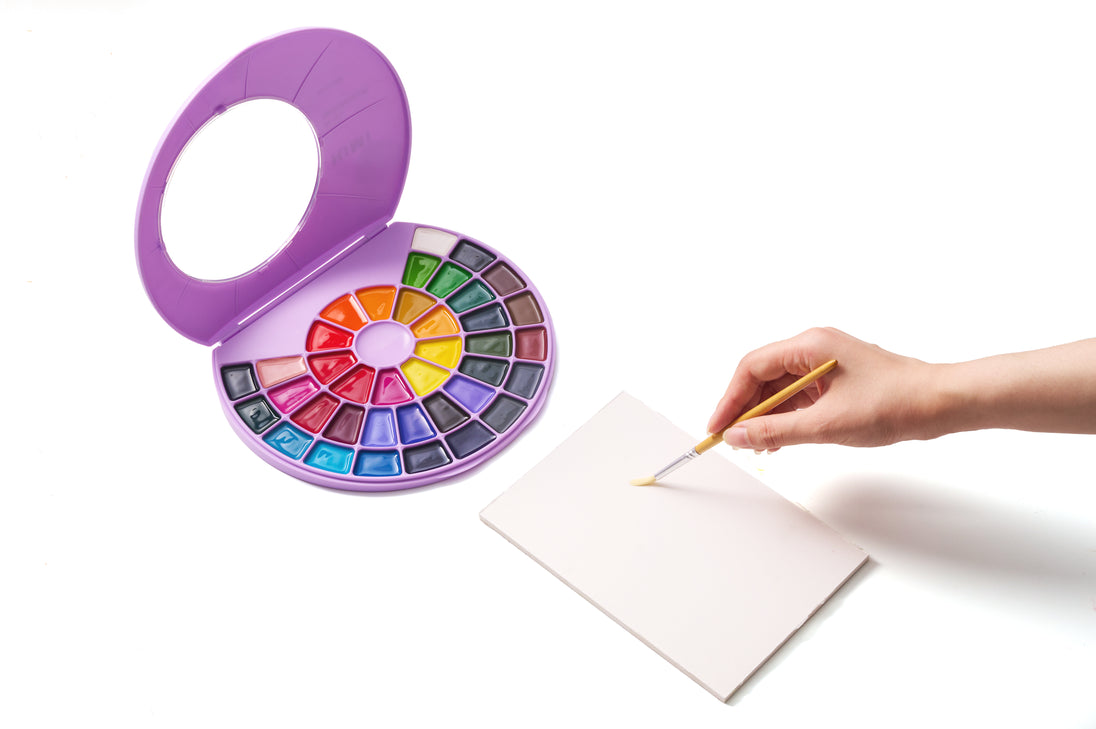38 bright, blendable colours in a playful purple case, with a free round synthetic brush included, perfect for beginners and creative hobbyists. Discover the fun of painting with the HIMI Semi-Moist Watercolour Set. With 38 vibrant shades, these colours dissolve instantly with water, blend smoothly, and layer naturally, making it easy to create both bold washes and delicate details. The semi-moist formula, made with pigments and gum arabic, delivers brighter tones, quick activation, and smooth colour overlay and mixing. The unique snail-shell design isn’t just eye-catching, it also makes painting easier and more fun. The ring-shaped arrangement helps you choose colours effortlessly, and the large lid can be used as a spacious mixing area. Compact, school-quality, and ready to go, the set includes a handy brush so you can start painting right away. A great choice for beginners, students, and anyone who wants to explore watercolours in a simple, colourful way.