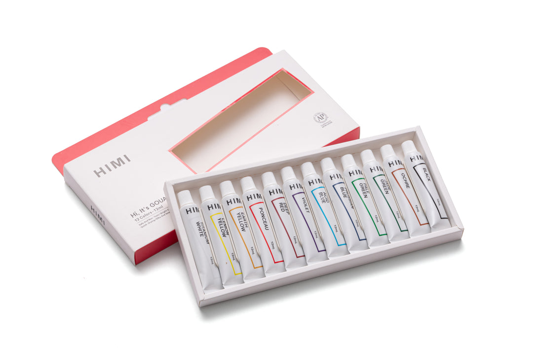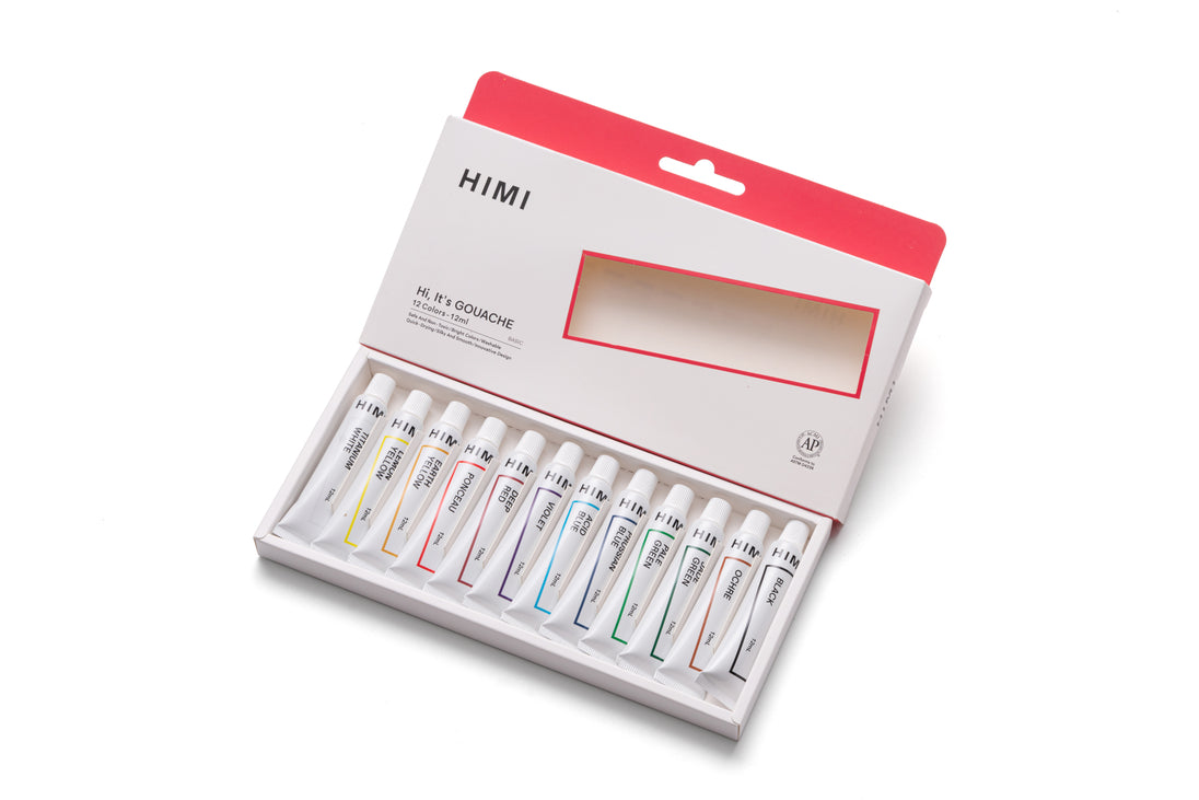 HIMI Tube Gouache Set, 12 Colours 12 ml, Paint For Precision Work, Mixing Colors, Artist Supplies, Art Painting Gift, Vibrant Colors, Beginners Gouache Paint Set, Safe, Non-Toxic Paint, Handy Tubes
