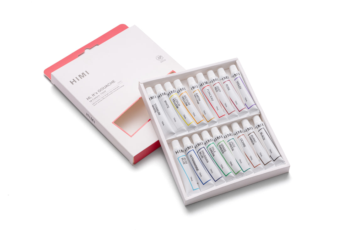 HIMI Tube Gouache Set, 18 Colours 12 ml, Paint For Precision Work, Mixing Colors, Artist Supplies, Art Painting Gift, Vibrant Colors, Beginners Gouache Paint Set, Safe, Non-Toxic Paint, Handy Tubes