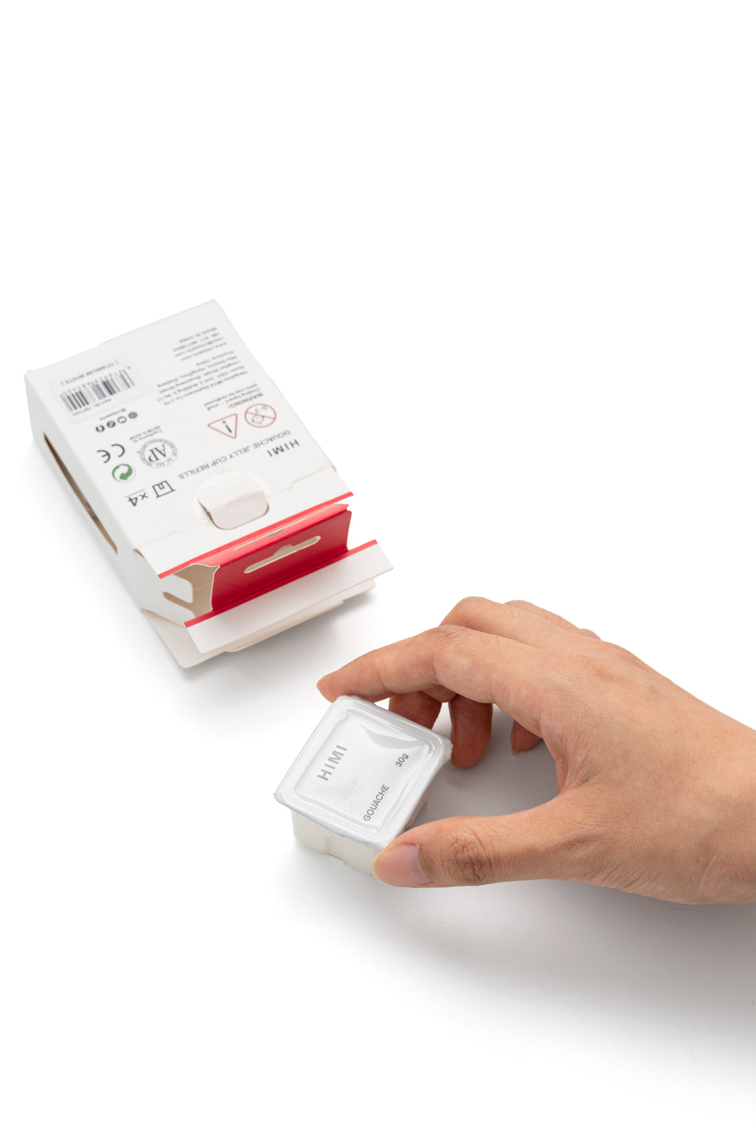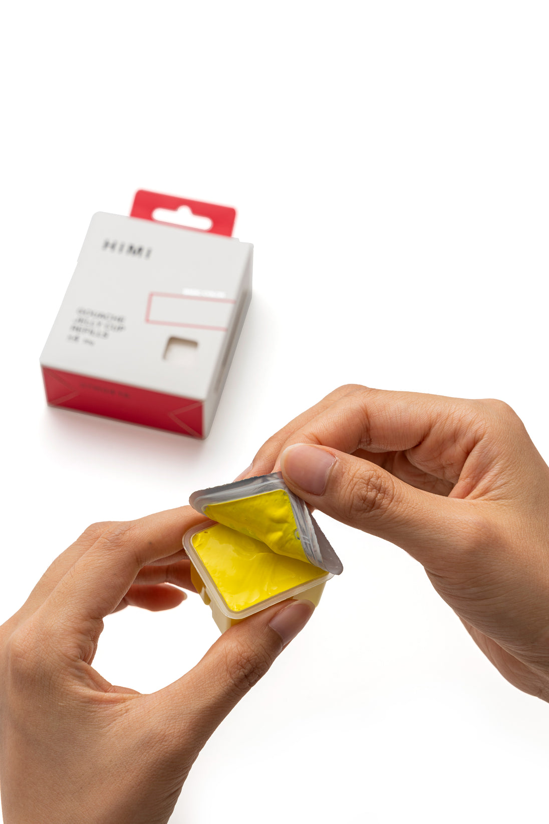 The essential for every artist. The HIMI Jelly Cup Gouache Refill 4-Pack includes four jelly cups of Titanium White colour, the most used shade in any gouache palette. Each paint is made with peach gum and rich pigments, giving you a smooth, silky feel on the brush and a matte finish that stays vibrant without whitening or dullness. Each cup fits perfectly into any HIMI Jelly Cup or Twin Cup Set, making it easy to replace empty colours and keep your collection complete. Gouache reactivates with water, so nothing goes to waste. Just add a drop to bring colours back to life. Easy to clean, safe, and non-toxic. Tip: Always use the HIMI Spray to keep paints moist and fresh for longer sessions. A must-have refill to keep your HIMI gouache set fresh and always ready to use.