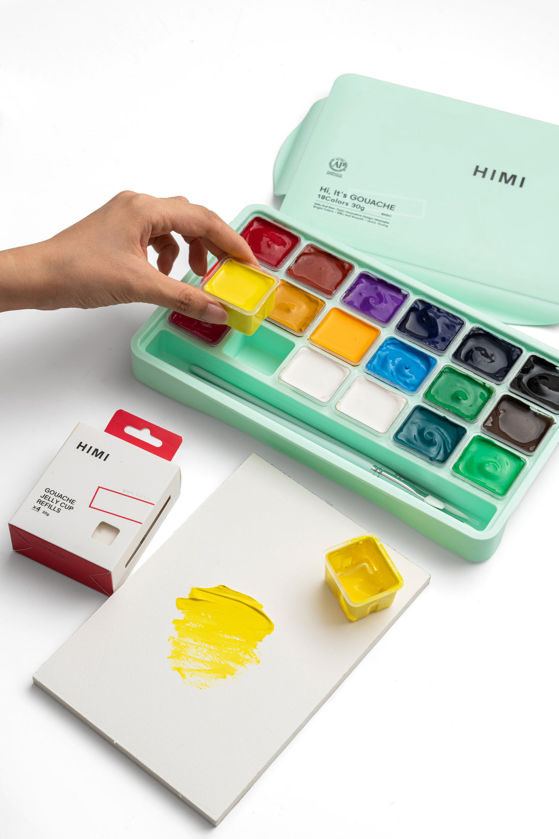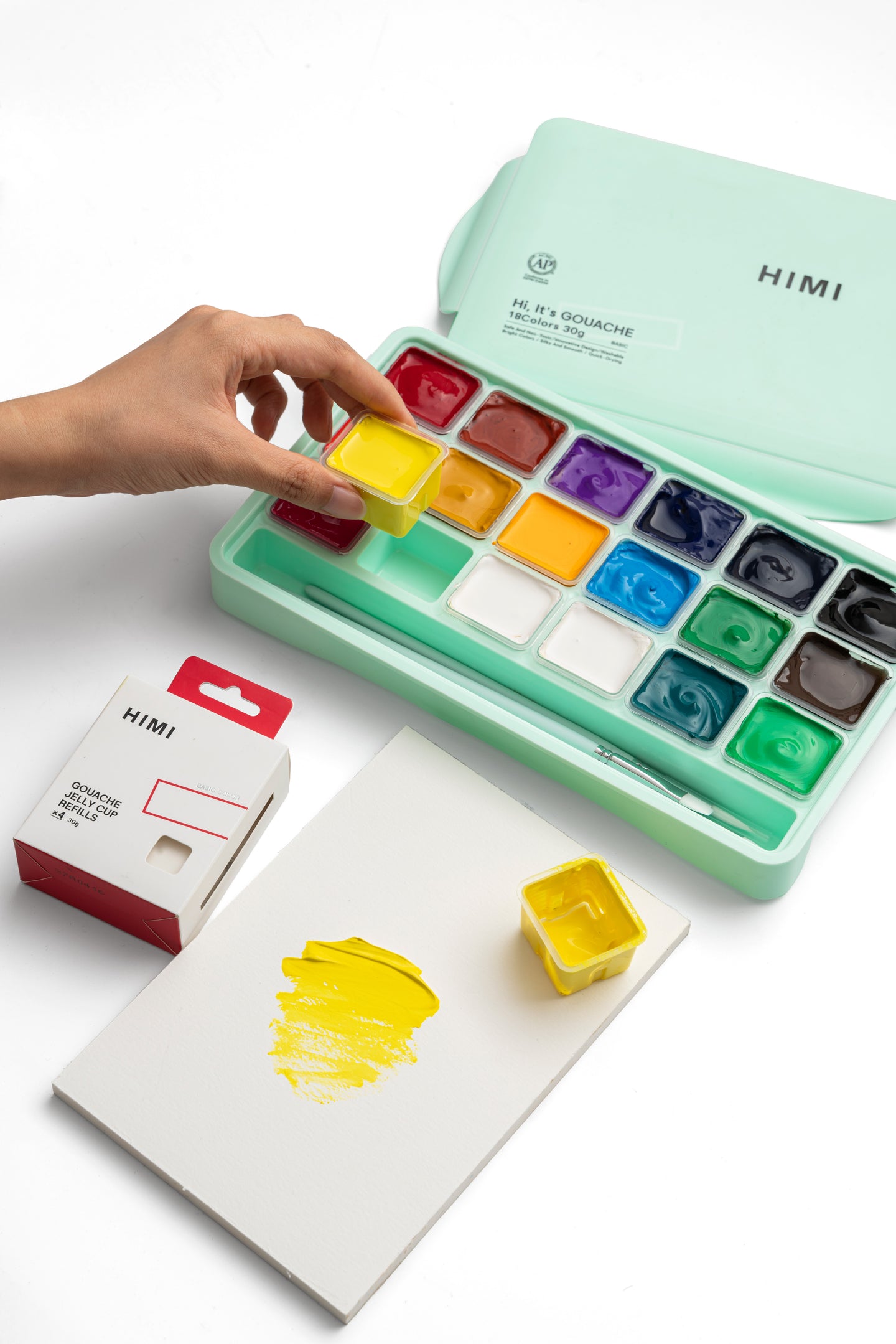 HIMI Jelly Cup Gouache Refill 4 Pack Titanium White Colors, Peach Gum Rich Pigments, Top Up Your Box, Gouache Paints, Art Set Supplies, Artist Painting, Gift, Art For Beginners, Shimmer