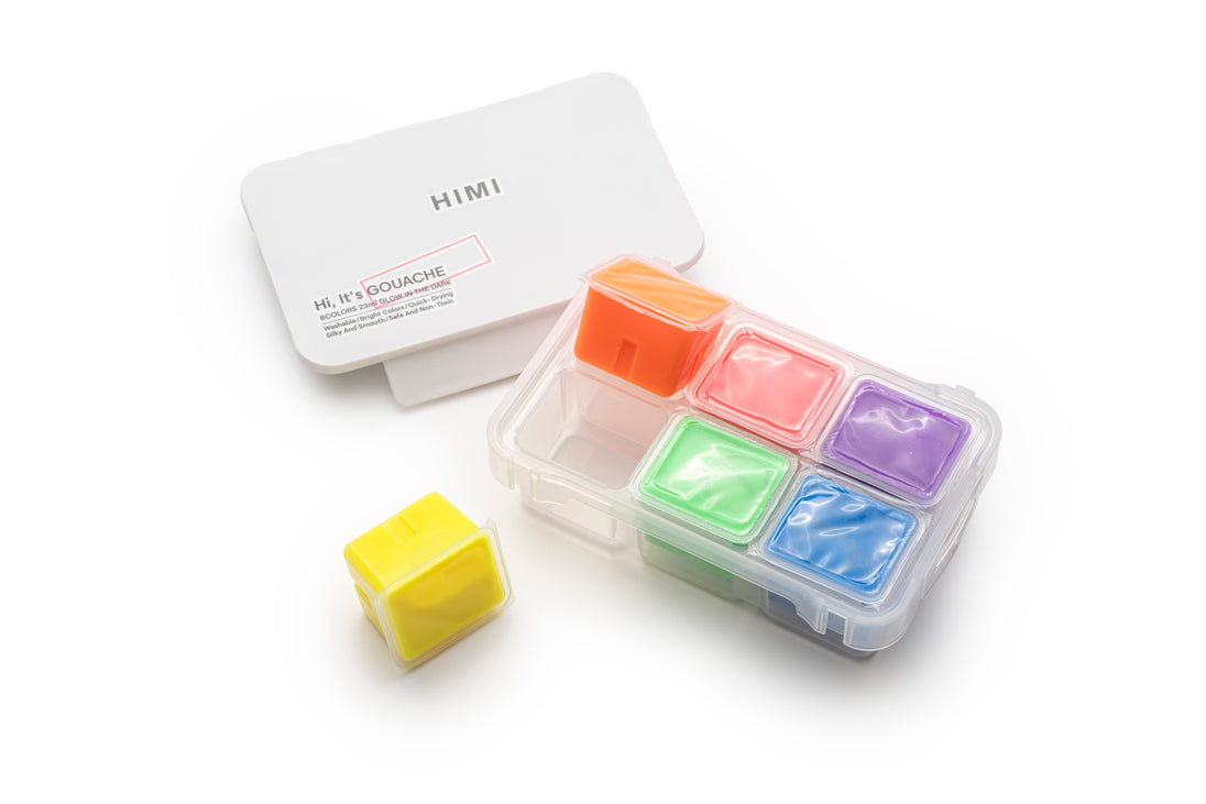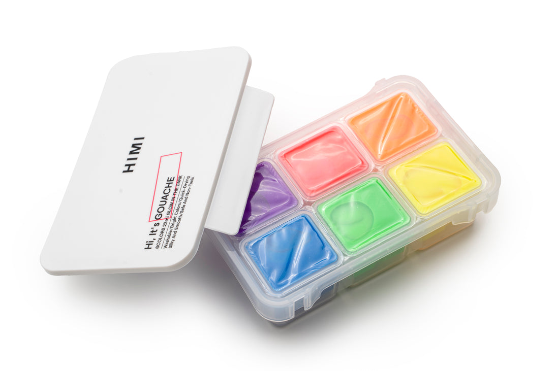 HIMI Jelly Cup Gouache Set 6 Paint Colours, White Case, Glow In The Dark Add Water To Reactivate, Smooth, Rich Colours, Gift, Artist Art Supplies, Large Scale Art Work To Fine Details, Ready To Use