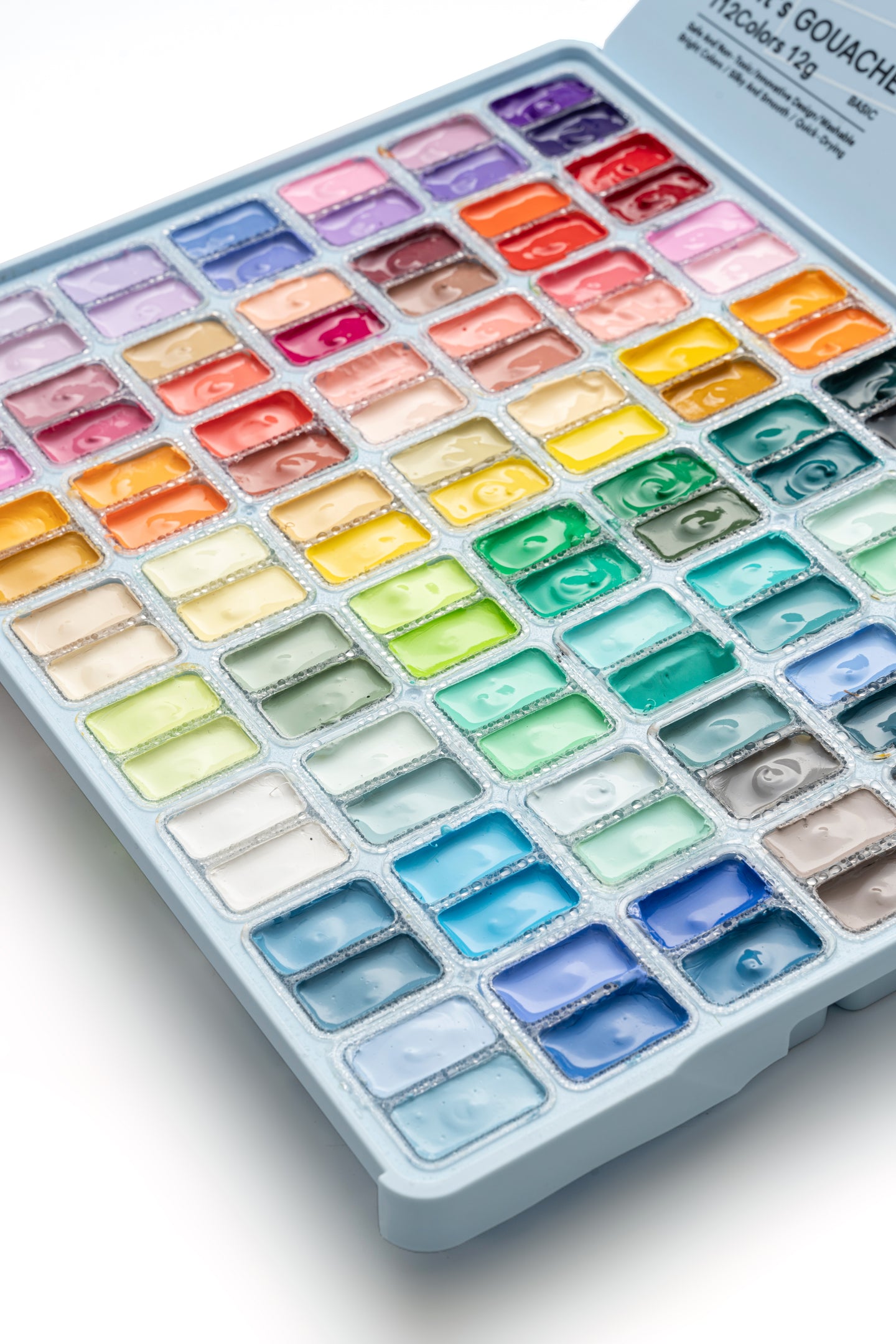 112 colours in a sleek ice blue case, opaque gouache paints for the complete spectrum, ready for beginners and artists who want it all. Paint without limits. The HIMI Twin Cup Gouache Set offers the full colour experience with 112 shades, from bold brights to subtle tones, no mixing needed. Each paint is made with peach gum and rich pigments, giving you a smooth, silky feel on the brush and a matte finish that stays vibrant without whitening or dullness. Gouache reactivates with water, so nothing goes to waste. Just add a drop to bring colours back to life. Easy to clean, safe, and non-toxic, this set is as practical as it is inspiring. Tip: Pair this set with the HIMI Spray to keep paints moist and fresh for longer sessions. The ice blue case keeps your collection neatly organised and portable, so you can carry the entire colour world wherever inspiration strikes. Ideal for beginners exploring freely and for experienced artists who want the widest palette at their fingertips.