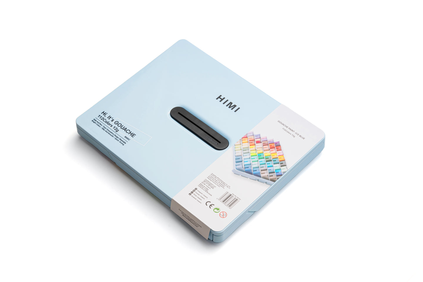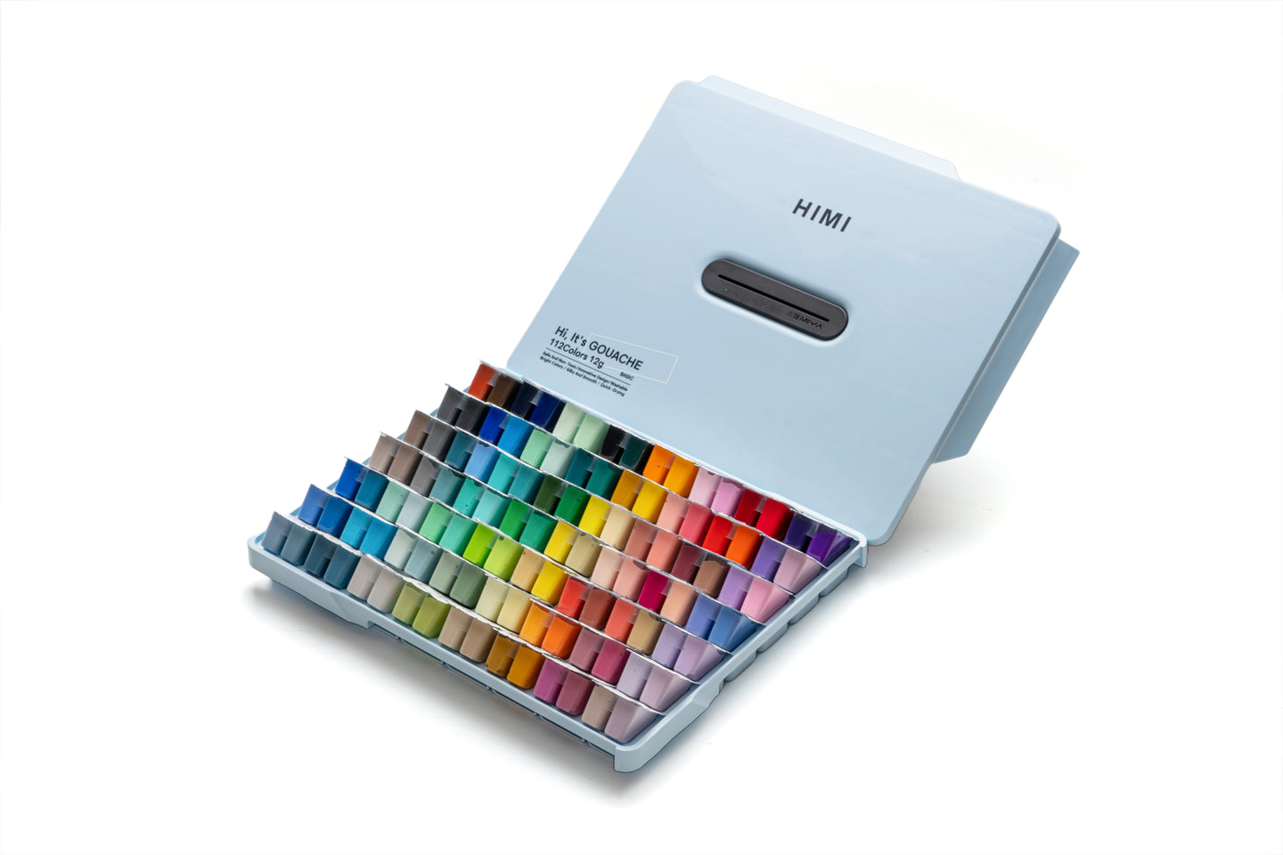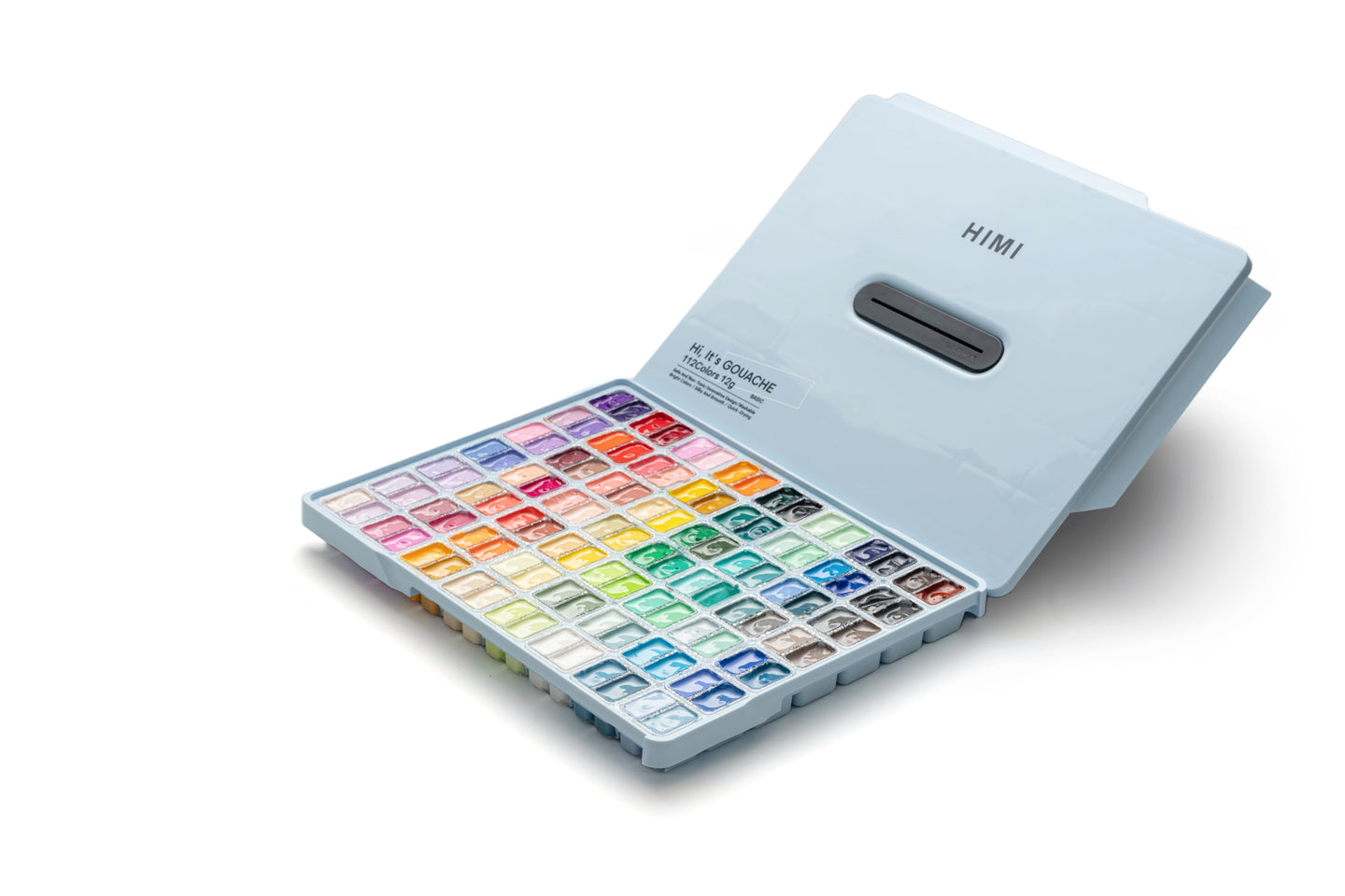 HIMI Twin Cup Gouache Set 112 Paint Colours, Ice Blue Case, Add Water To Reactivate, Smooth, Rich Colours, Gift, Artist Art Supplies, Large Scale Art Work To Fine Details