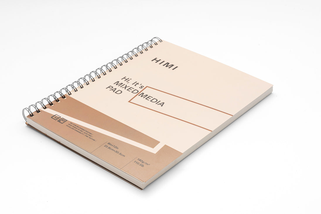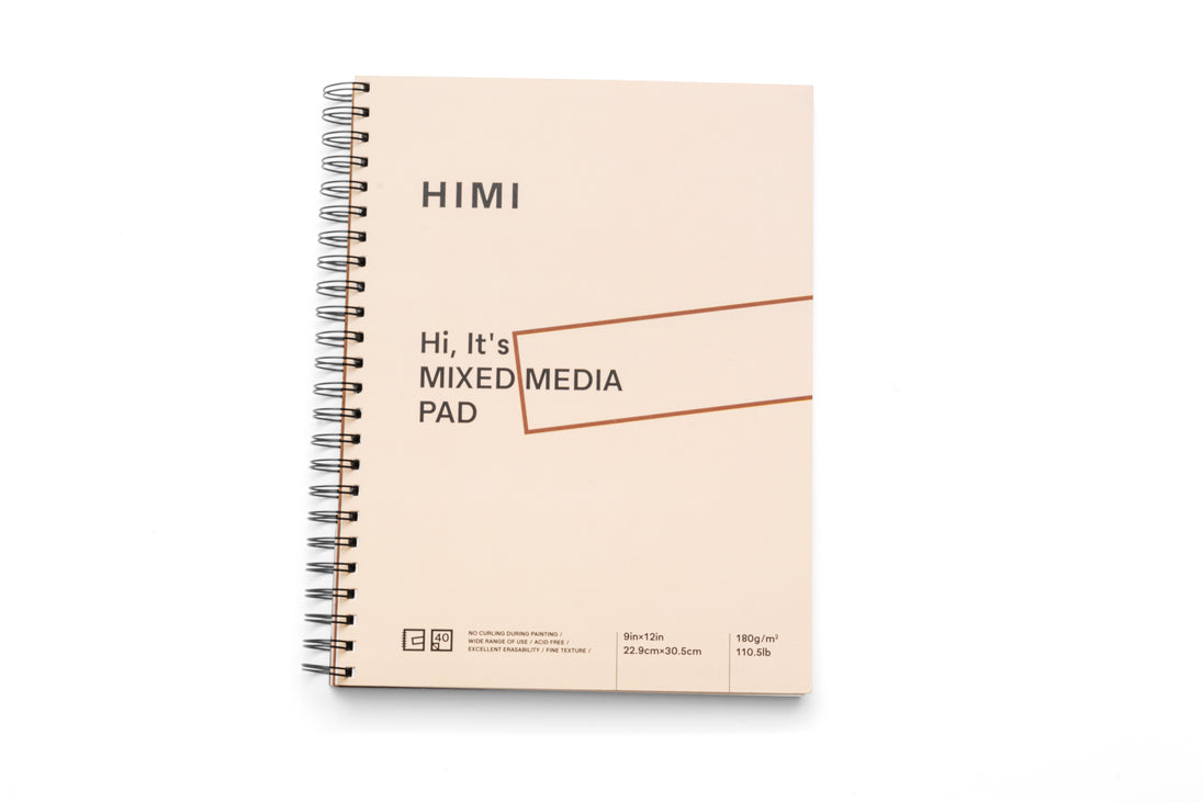 HIMI Paper Pad Mixed Media 22.9 x 30.5cm (9 x 12"), 180g, 40 Sheets, Spiral Bound, White Paper, Artist Supplies, Paper For Painting, Spiral Binding Sketchbook, Pencil, Drawing, Mix Media