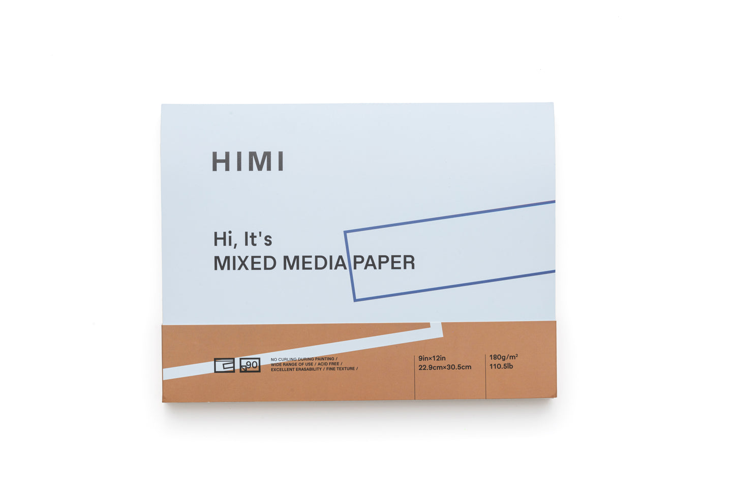 HIMI Paper Pad Mixed Media 22.9 x 30.5cm (9 x 12"), 180g, 90 Sheets, Glue Bound, White Paper, Artist Supplies, Paper For Painting, Spiral Binding Sketchbook, Pencil, Drawing, Mix Media