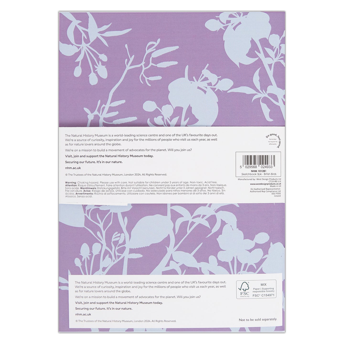 NHM Natural History Museum A5 Sketchbooks, Pack of 3, British Birds, For Drawing, Sketching, Doodling, Writing And Scrapbook Designs, With Mixed Media, Pen, Ink, Painting And More, Art, Craft Supplies