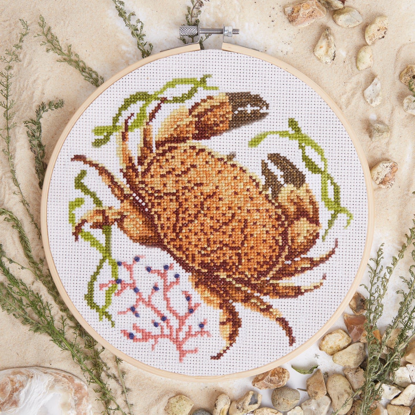 NHM Natural History Museum Cross Stitch Kit, Crab Design, 14cm Embroidery Kits For Adults, Cross Stitch Kits For Adults Beginners, Gift Idea, With Embroidery Patterns, Embroidery Set