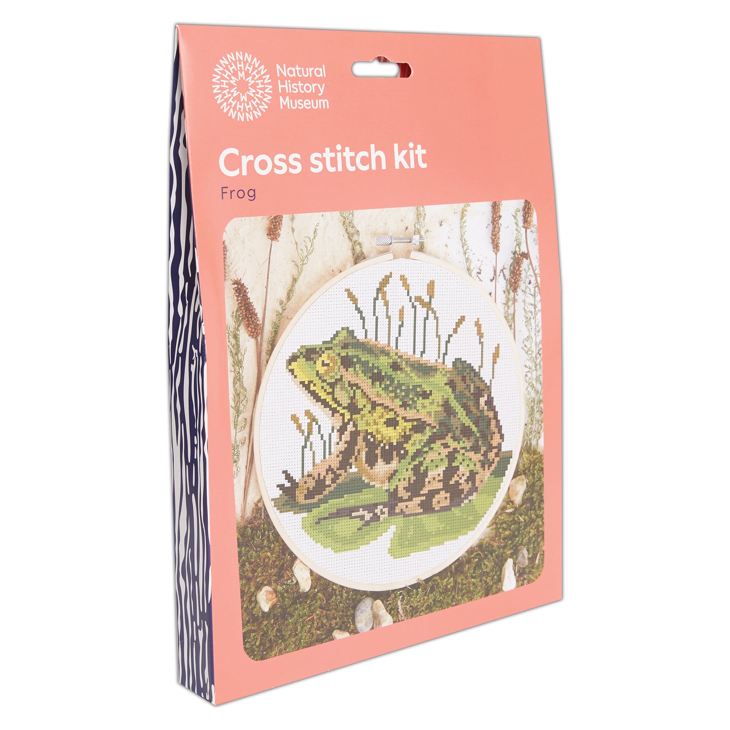NHM Natural History Museum Cross Stitch Kit, Frog Design, 14cm Embroidery Kits For Adults, Cross Stitch Kits For Adults Beginners, Gift Idea, With Embroidery Patterns, Embroidery Set