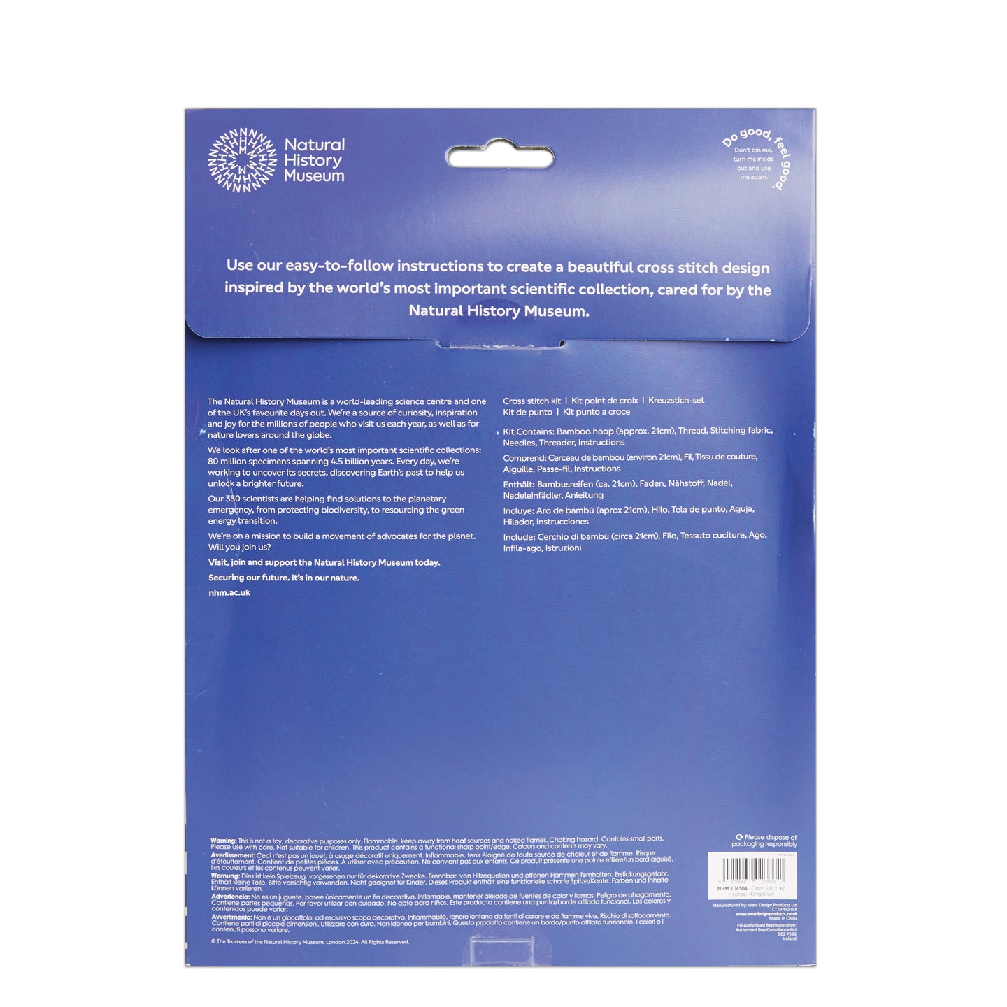 NHM Natural History Museum Cross Stitch Kit, Kingfisher Design, 14cm Embroidery Kits For Adults, Cross Stitch Kits For Adults Beginners, Gift Idea, With Embroidery Patterns, Embroidery Set