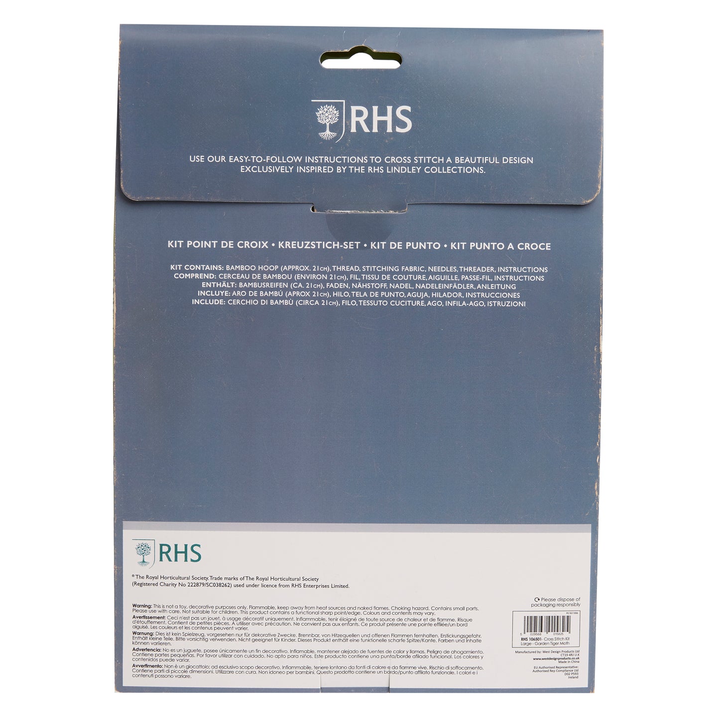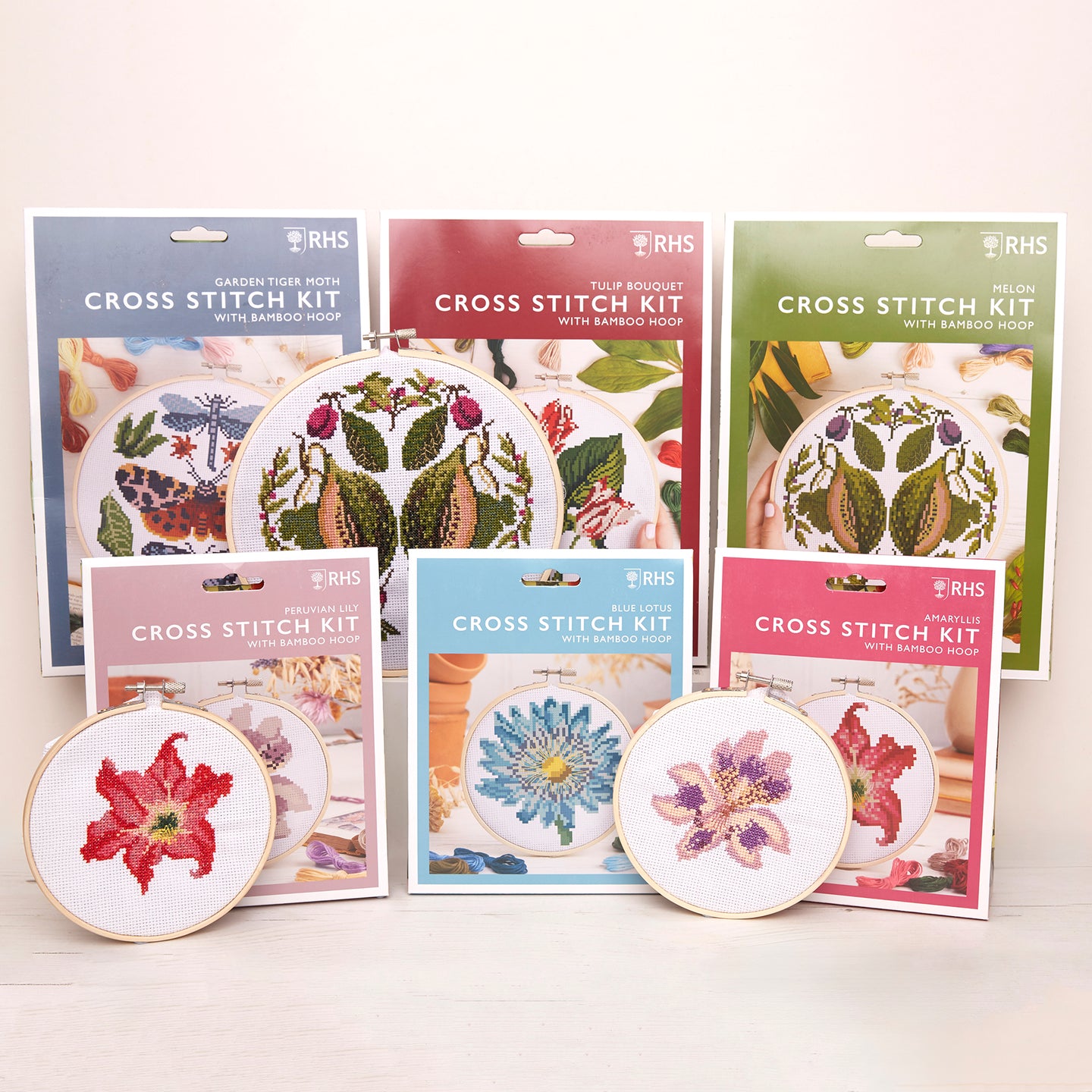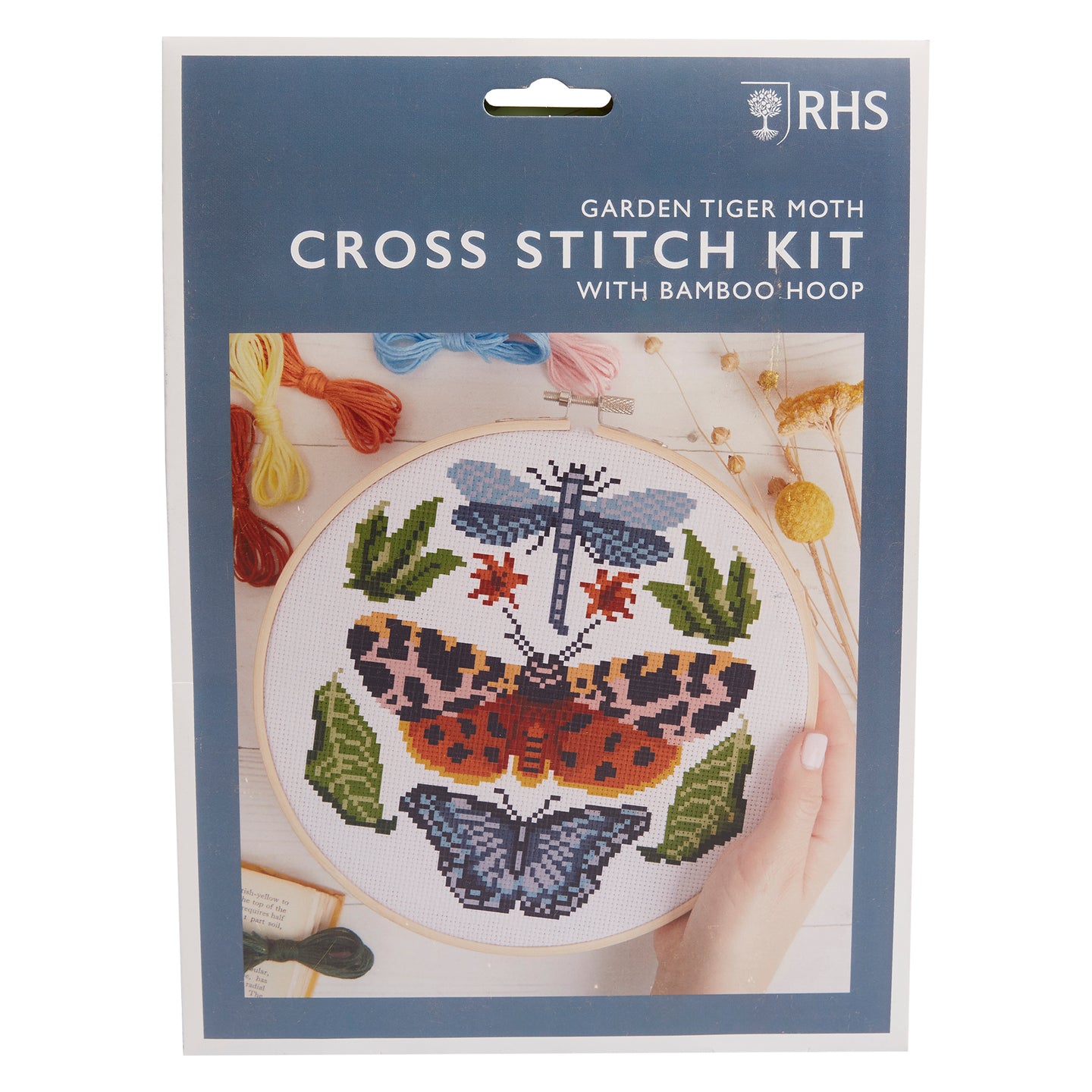 RHS The Royal Horticultural Society Cross Stitch Kit, Cross Stitch Kit, 8", Multicoloured, Includes Bamboo Embroidery hoop, Aida Fabric, Embroidery Threads, Needles, Threader, Instructions